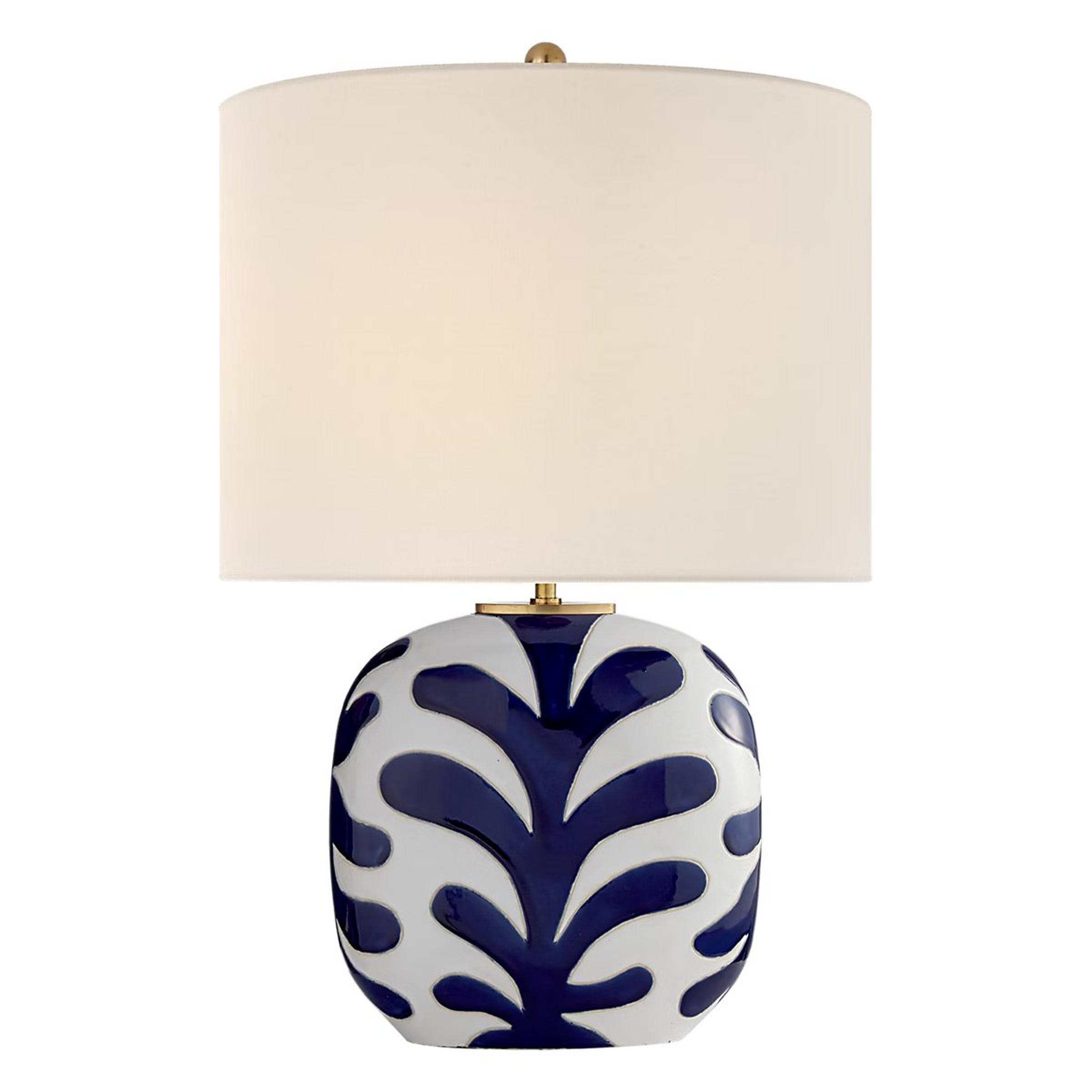 The Parkwood Table Lamp, designed for the kate spade new york Collection brings a touch of timeless elegance to your space. The rounded ceramic base features a bold botanical motif set against a crisp white backdrop, creating a fresh yet sophisticated design. Topped with a classic white linen drum shade and accented with subtle brass hardware, this lamp effortlessly adds style into a variety of interiors. The eye-catching Parkwood Table Lamp is ideal for a living room, bedroom, or entryway, it provides warm, inviting light while doubling as a stylish statement piece. Perfect for those who love to layer texture, pattern, and light.