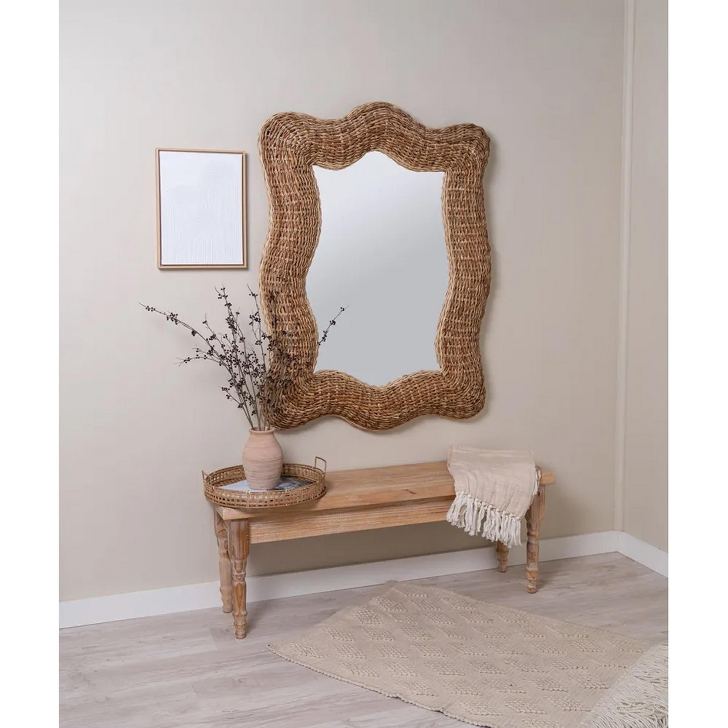 The lovely Kala Mirror features an undulating and organic frame of natural woven banana fiber. A textural dream with an array of lovely variation in the natural fibers, this mirror is just the ticket for your home.