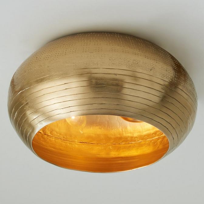 Spirited with bohemian essence, our Kimbo Ceiling Light will bring a bright and shining accessory into your eclectic home. Decorated with delicate Moorish etchings, the swanky style is adorned by the polished new brass finish for a focal piece in your small foyer. This fixture is assembled by hand in our Richmond, Virginia production facility using solid brass hardware.