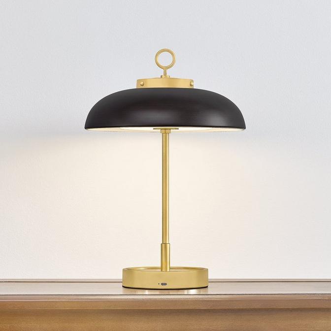 This rechargeable lamp aims light downward over desks and side tables to cast warm lighting wherever needed. The cordless nature of the lamp allows for versatile placement regardless of proximity to an outlet, and it helps any room look tidy without the clutter of cords. 12-15hr battery life. USB-C charger included.