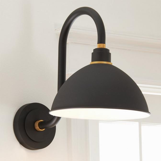 Planting an understated form with an ode to antique style, this outdoor light can transcend your patio to your living room to your bathroom! Versatility in its location is this wall lights specialty with a variety of finishes to choose from. With a solid finish around the body and curved arm, brass accents are found with a knurled detail giving a small ornamentation to boost the transitional aesthetic.