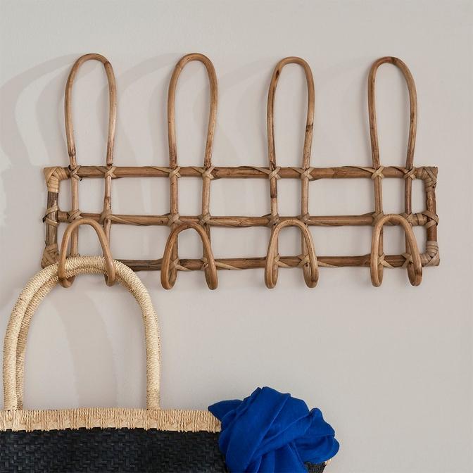 Boho, but make it functional! This adorable and useful set of wall hooks is the perfect spot to hang your bag and coat when you get home from a long day. Because this product is made of natural materials, no two will be exactly alike in construction, adding to the unique charm and beauty of this lovely piece. This piece does not include mounting hardware.