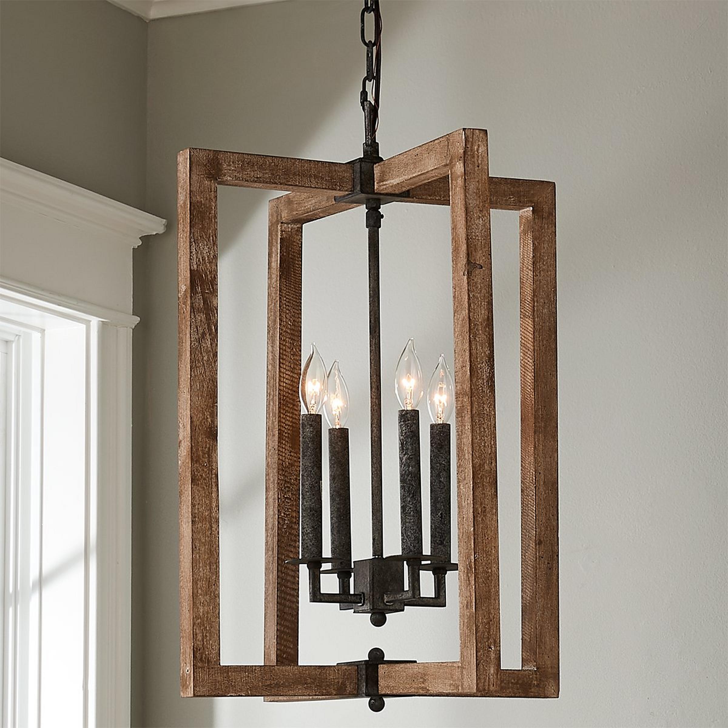 Our Laney Lantern features a classic figure, perfect for your foyer. The open wooden frame leaves high visibility for the center light cluster to shine through and share its radiance.