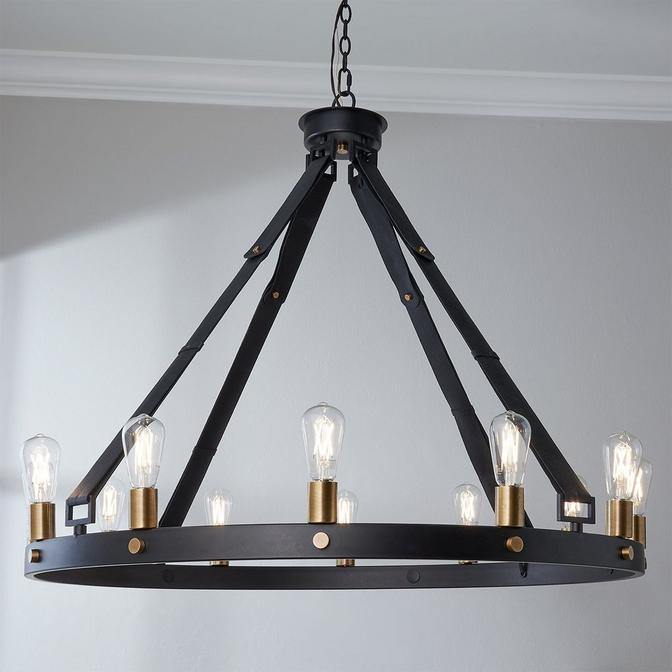 Leather Strap Mixed Metals Chandelier - 12-Light