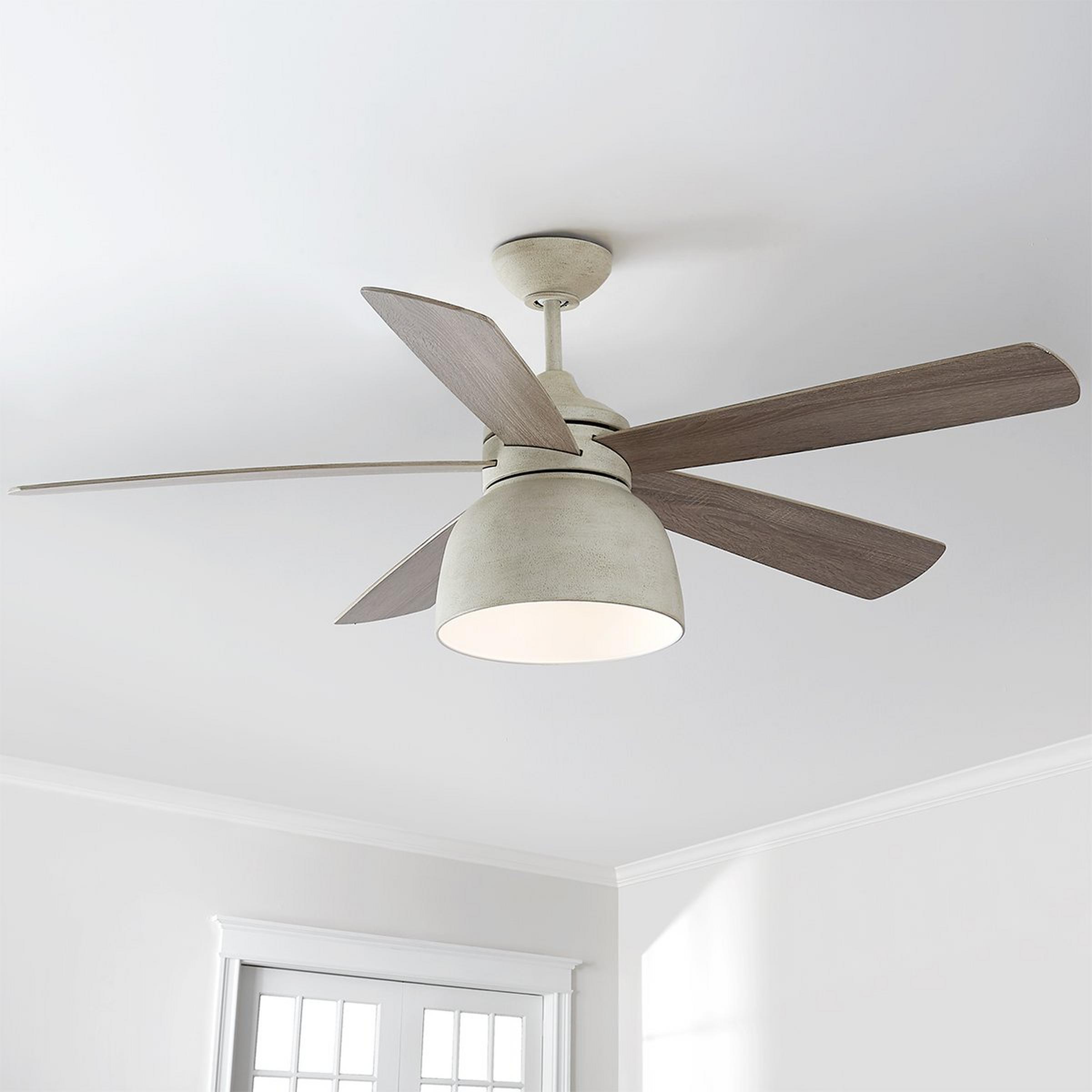 A sleek, jet-setting look never goes out of style. Available in the perfect size for your living room or bedroom, our LED Century Indoor/Outdoor Ceiling Fan will light your space as well as cool it down. With a special feature in the taupe version, the blades are reversible - switching from a wooden appearance to the color that matches its body. Energy saving DC Motor.