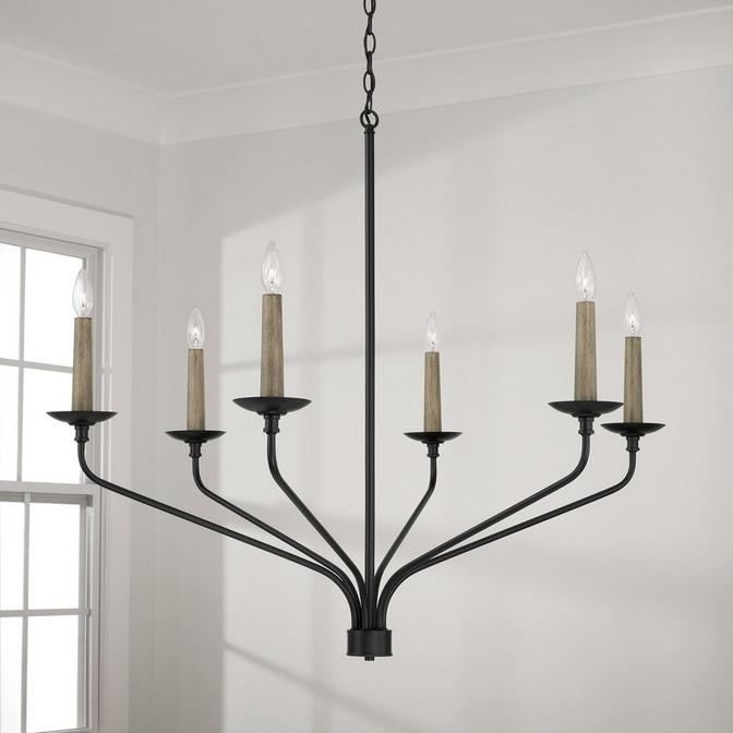 Versatile on multiple levels, this fixture comes with interchangeable candle sleeves depending on whether the situation calls for the faux-wood finish or matte black. The frame simplifies a traditional design by retaining quintessential qualities of beauty and elegance through slim, outspread arms.