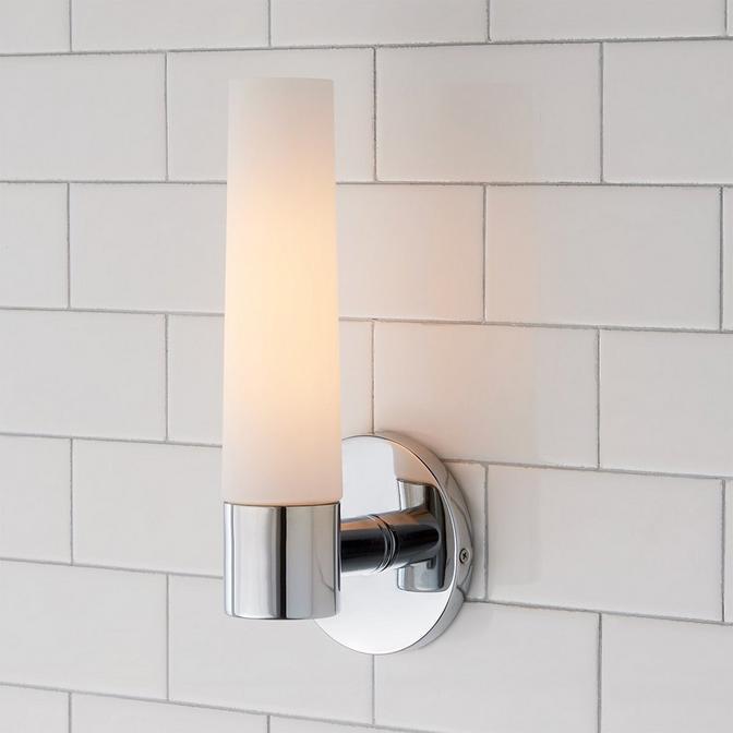 This frosted glass tubular bath light adds sophistication to your bath in minimalist style.