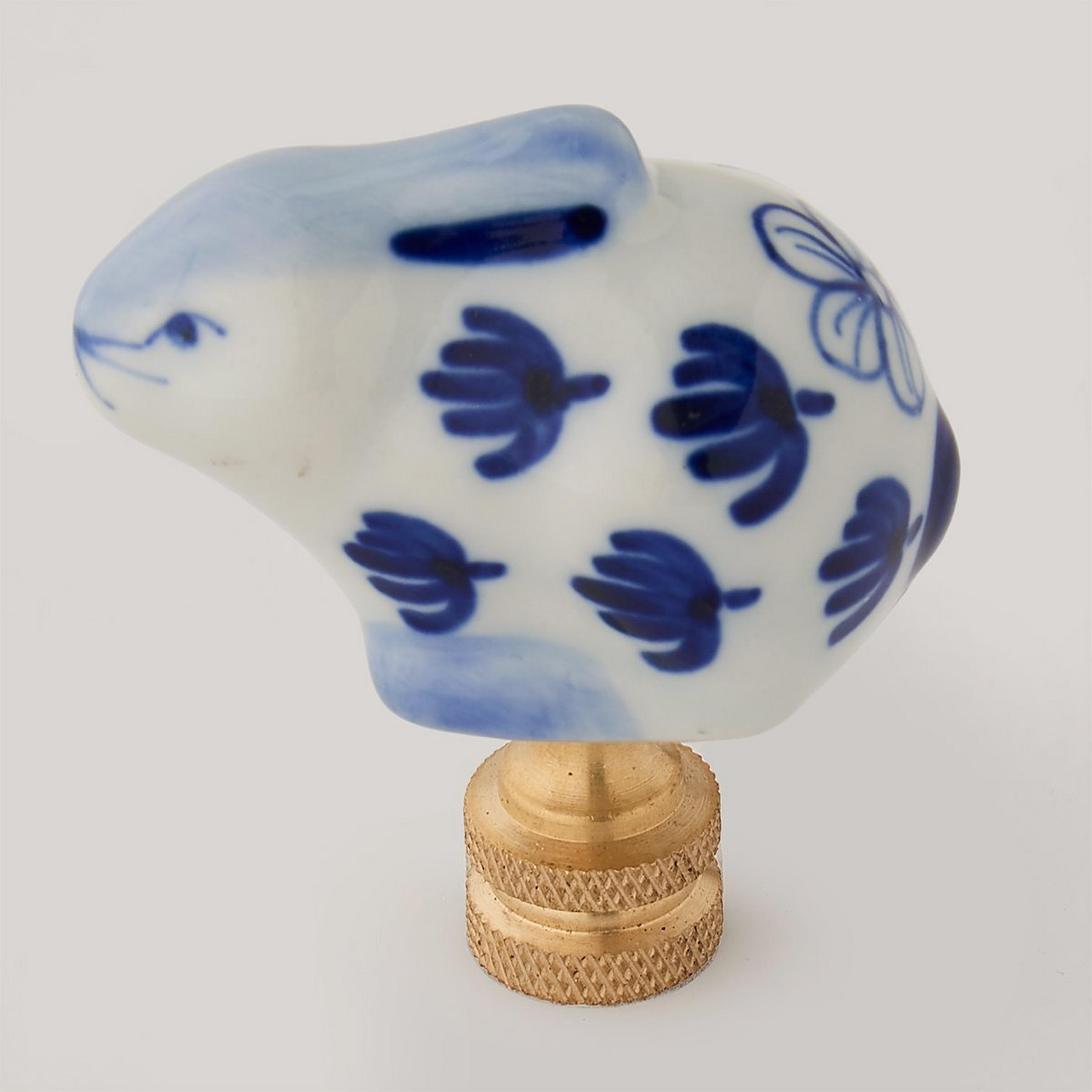 A sweet piece to complete your fixture, our Little Blue Bunny Finial is crafted from porcelain and painted to decorate its lovable personality.