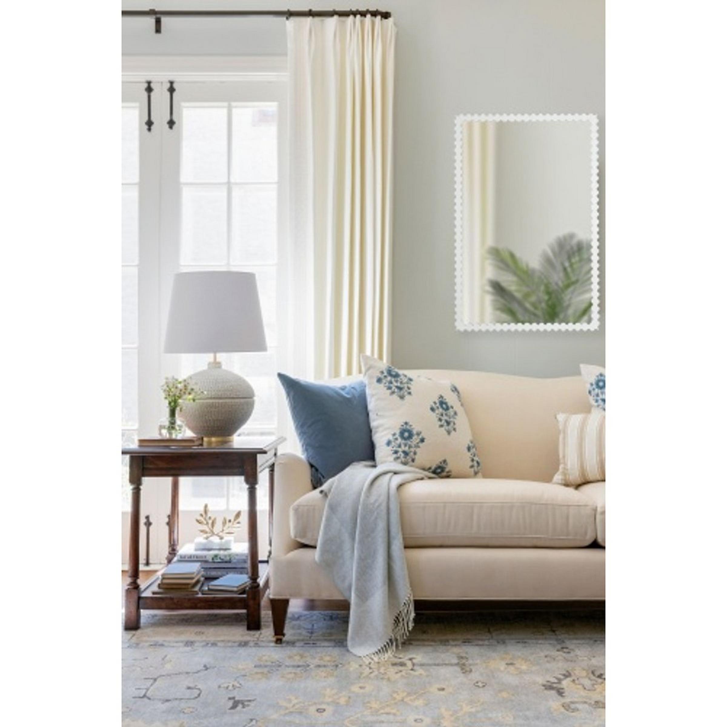 Flashy yet restrained, this mirror sensibly pushes the boundaries of style. The rectangular frame features a tight, wavy profile that exudes playfulness. It serves as a whimsical accent in a powder room or above a vanity. D-ring hardware included.