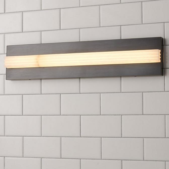 Set the right tone in your home with the Loche LED Bath Sconce. Natural alabaster comes alive with ribbed details and a simplistic forged metal frame. Style this fixture in a powder room for a tasteful art-deco-meets-industrial flair.