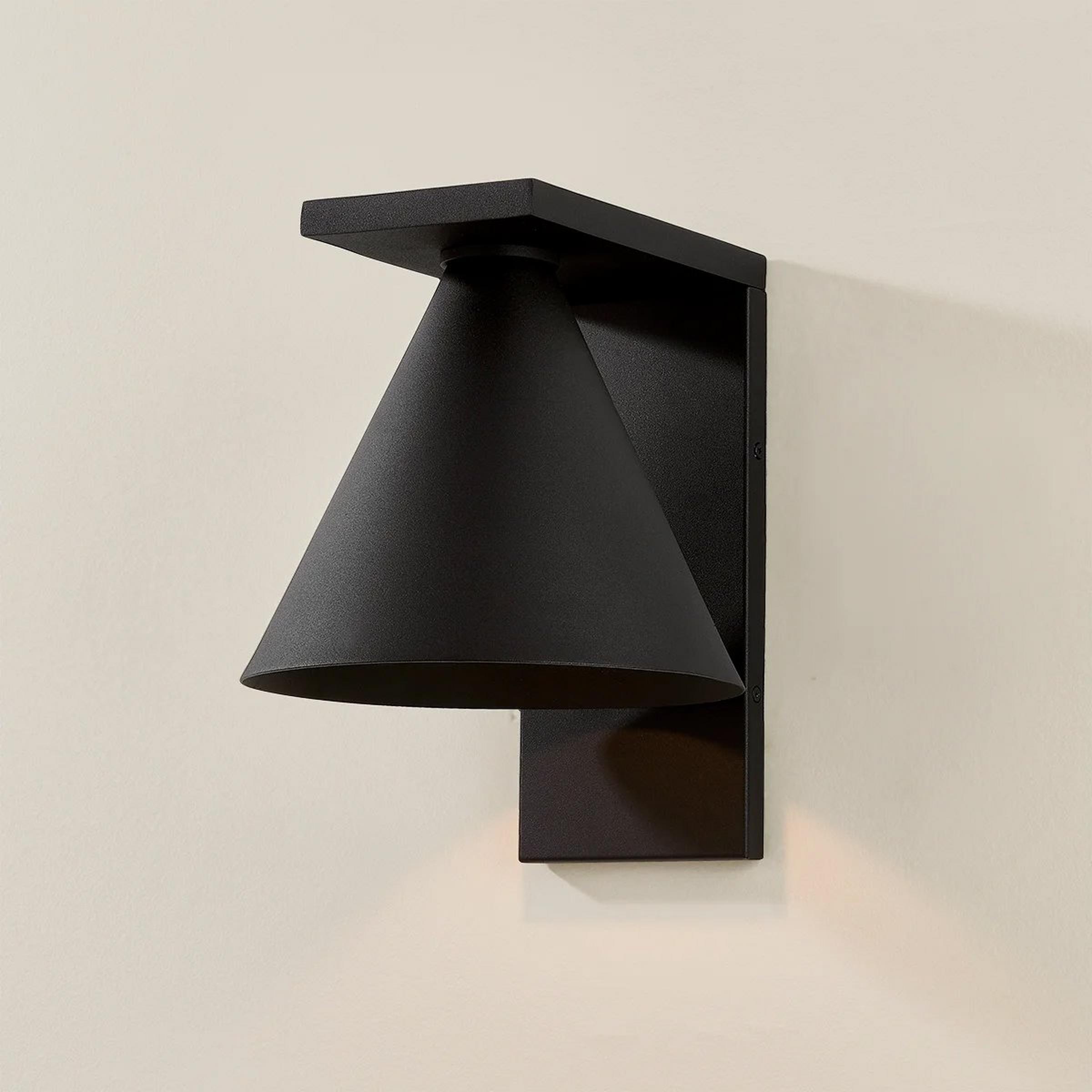 Our Lochmere Outdoor Sconce holds a cone shade beneath a unique angular frame to cast illumination downward over a pathway or garden bed. Excellently functional, this sconce meets the standards of the Dark-Sky association as it limits light pollution, preserving the beauty of the night sky.