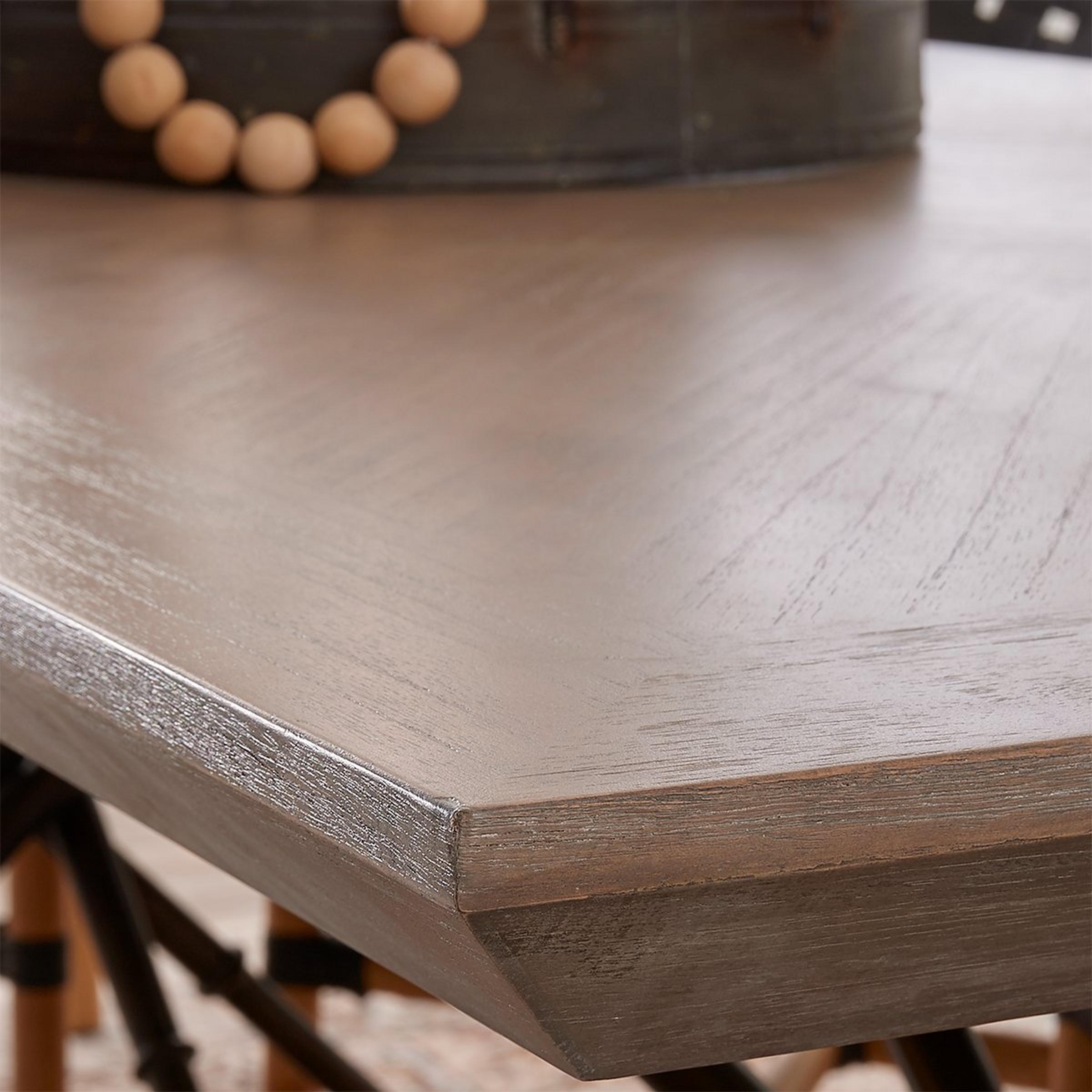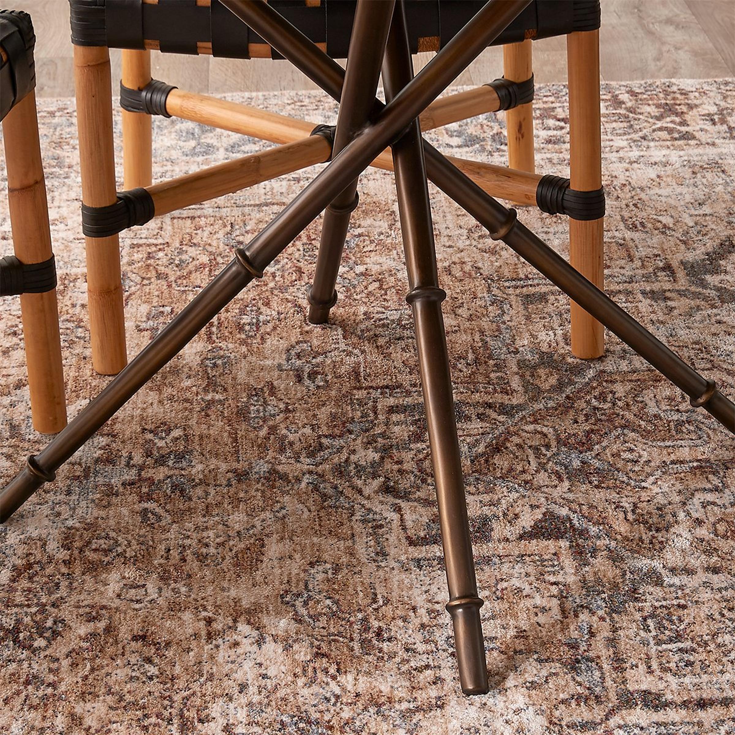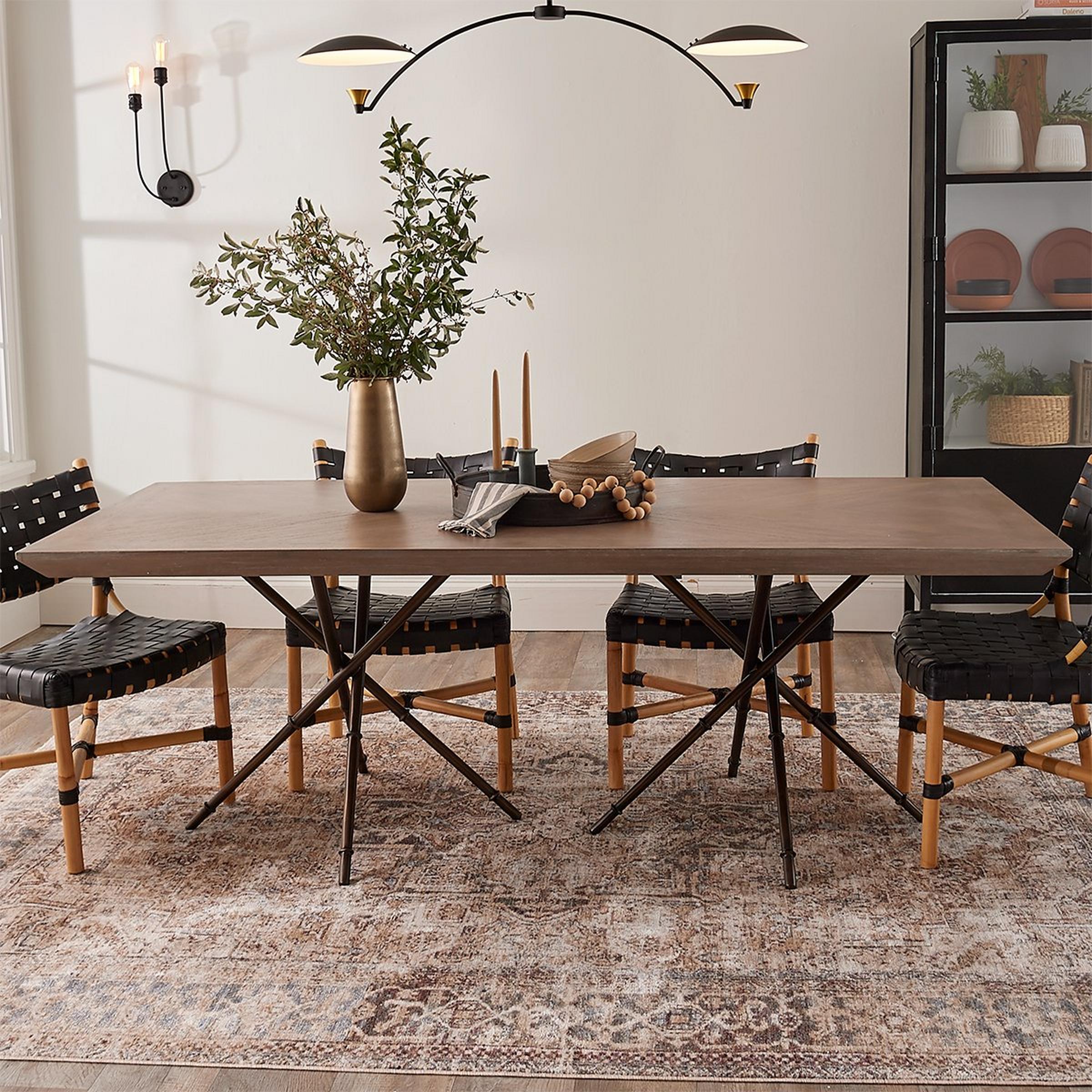This super sleek modern dining table adds architectural intrigue with a series of metal supports crossed to created the angular legs.