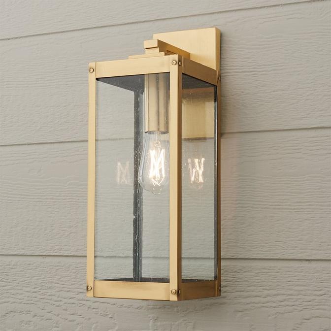 Our Maddox Outdoor Collection will bring lively style to your home's exterior when sporting an urban-modern design. The lantern figure frames are partnered with seedy glass panes to bring in a transitional detail. Crafted from brass materials, the exterior will have a living finish as it can patina over time to create matured appearances.