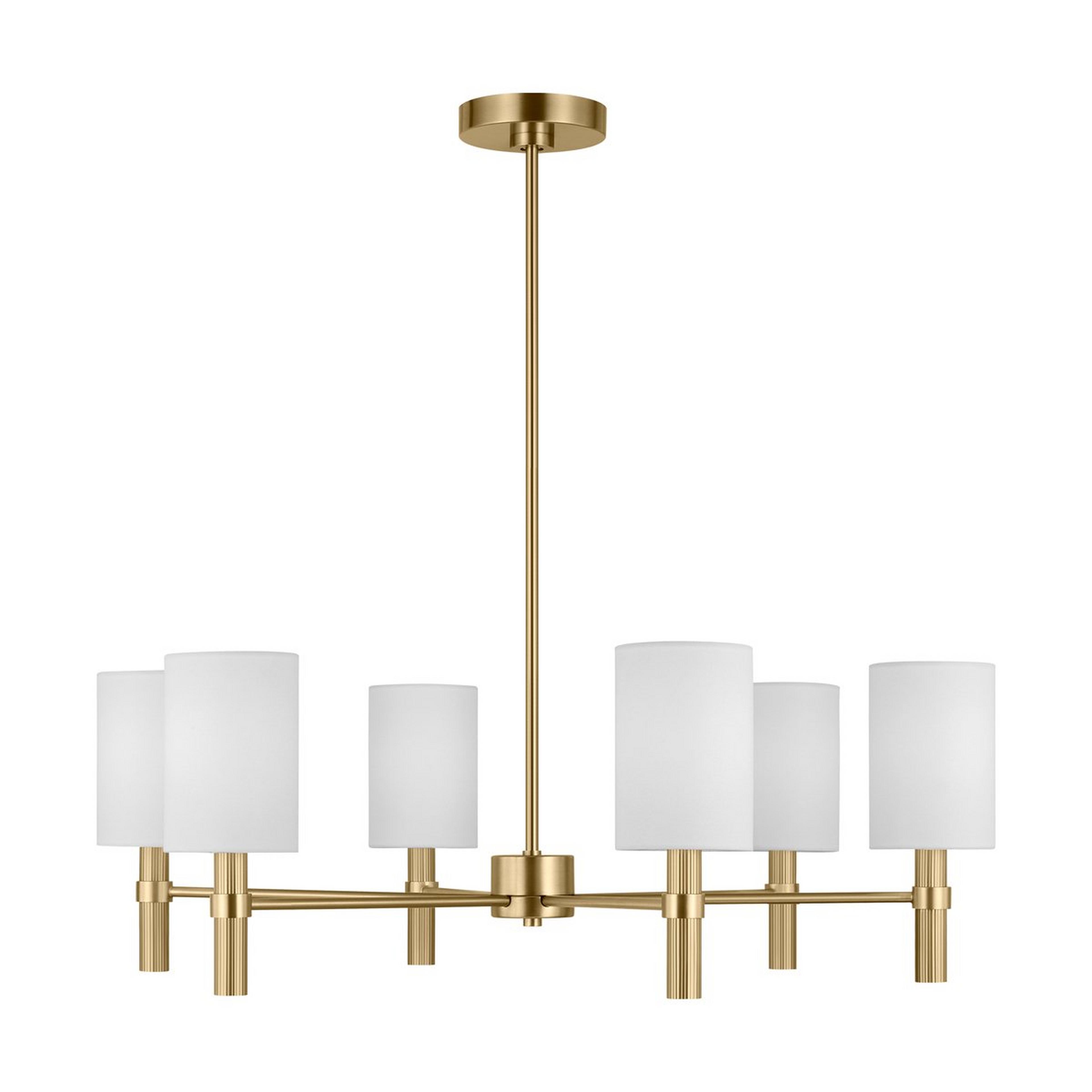 Designed for the Drew & Jonathan Collection, the Manor Collection exudes an air of modern regality. The corrugated hardware features a smooth central band and is paired with soft cylinder shades. An exquisite addition to a dining room or foyer, showcase your style with Manor's understated elegance!