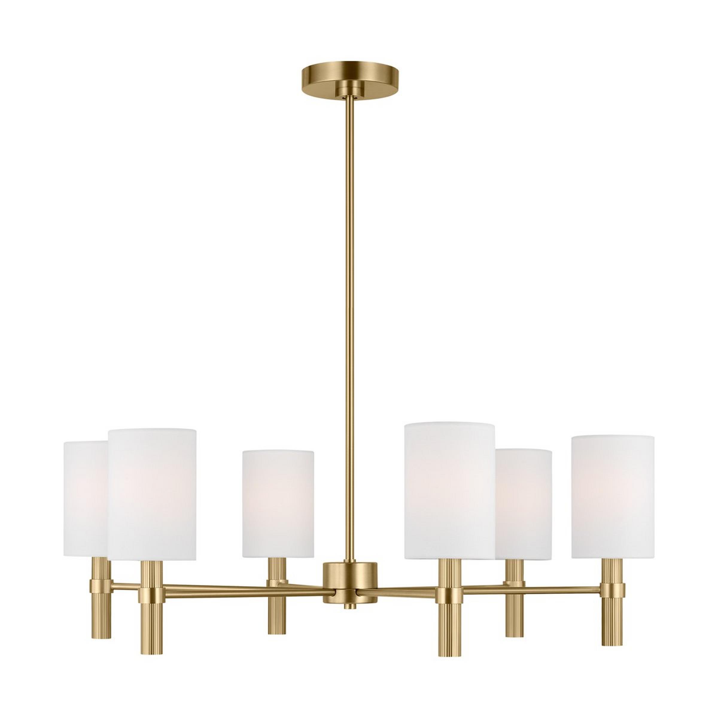Designed for the Drew & Jonathan Collection, the Manor Collection exudes an air of modern regality. The corrugated hardware features a smooth central band and is paired with soft cylinder shades. An exquisite addition to a dining room or foyer, showcase your style with Manor's understated elegance!