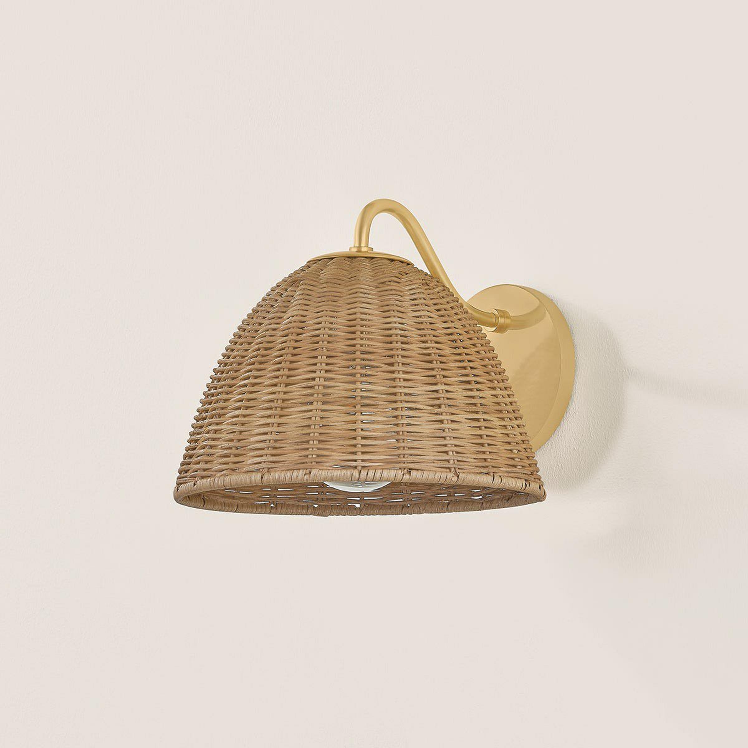 Taking inspiration from nature through the woven wicker shade, the Marathos Sconce adds an inviting feel to the home as an accent piece or as a focal point. Install in a powder room to enliven the space, or add a pair on either side of a sofa in a sunroom to help bring the outdoors in. Wherever placed, it shines a textural glow of light through the woven shade. The elegant, curving support rod is evidence of thoughtful design, showcasing timeless, formal style to complete a well-rounded and versatile fixture.