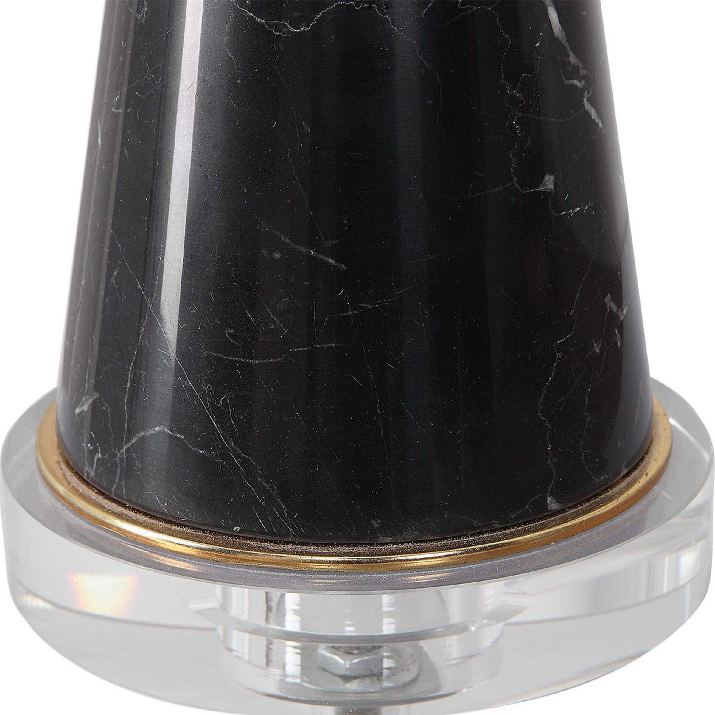 A beautiful, hour-glass figure is presented in our Marble Corset Table Lamp. The body is constructed from a sleek, black marble and accented with gold and crystal detailing. With a mid-century flair, feature this fixture with stylish living room decor.