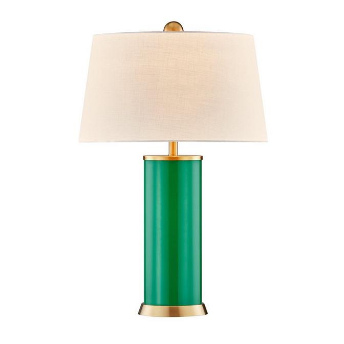 Transform your space with a splash of color using our Mariel Table Lamp. Its timeless silhouette beautifully complements its striking base that radiates energy alongside its fabric shade. The lamp features a crisp shade and a large finial, creating a classic shape. Designed with rich metallic accents that accentuate the vibrantly colored glass base, the exciting interplay of color and finishes heightens the design. This lamp isn't just a source of light; it's a captivating statement piece that infuses your space with personality and warmth.