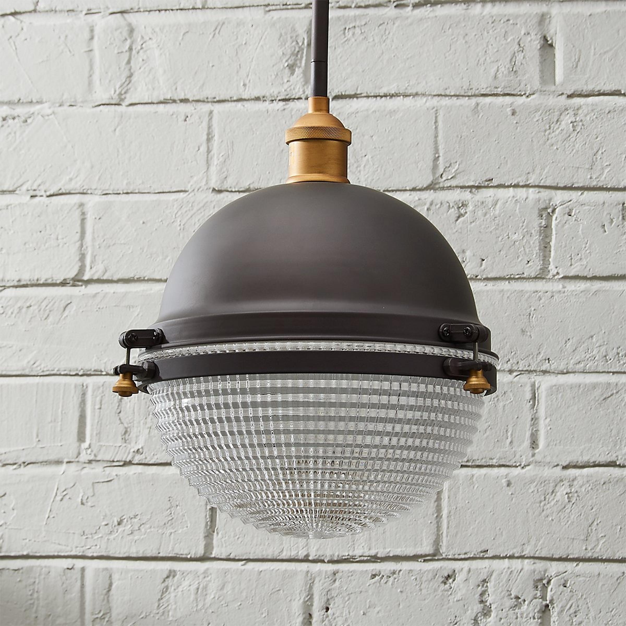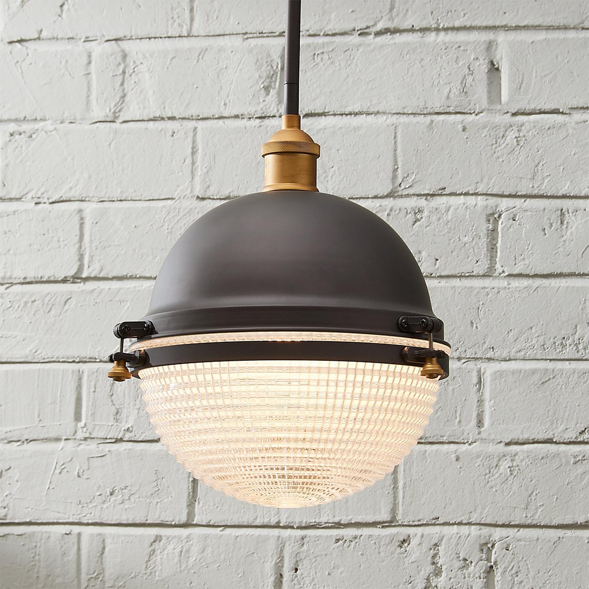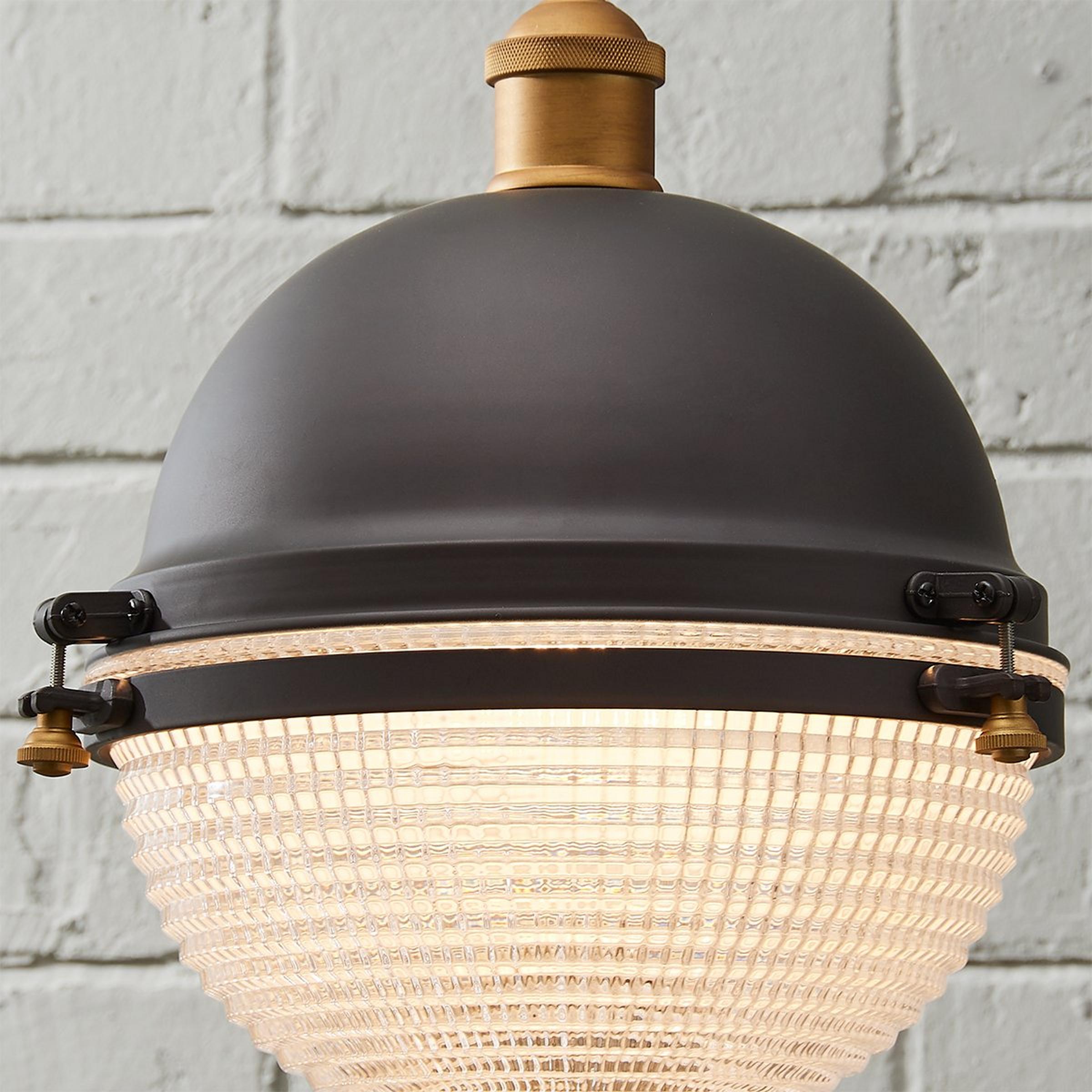 This outdoor pendant reminds us of the seaport, ready to take sail. The Rubbed Bronze body makes the Antique Brass components pop above the textured glass.
