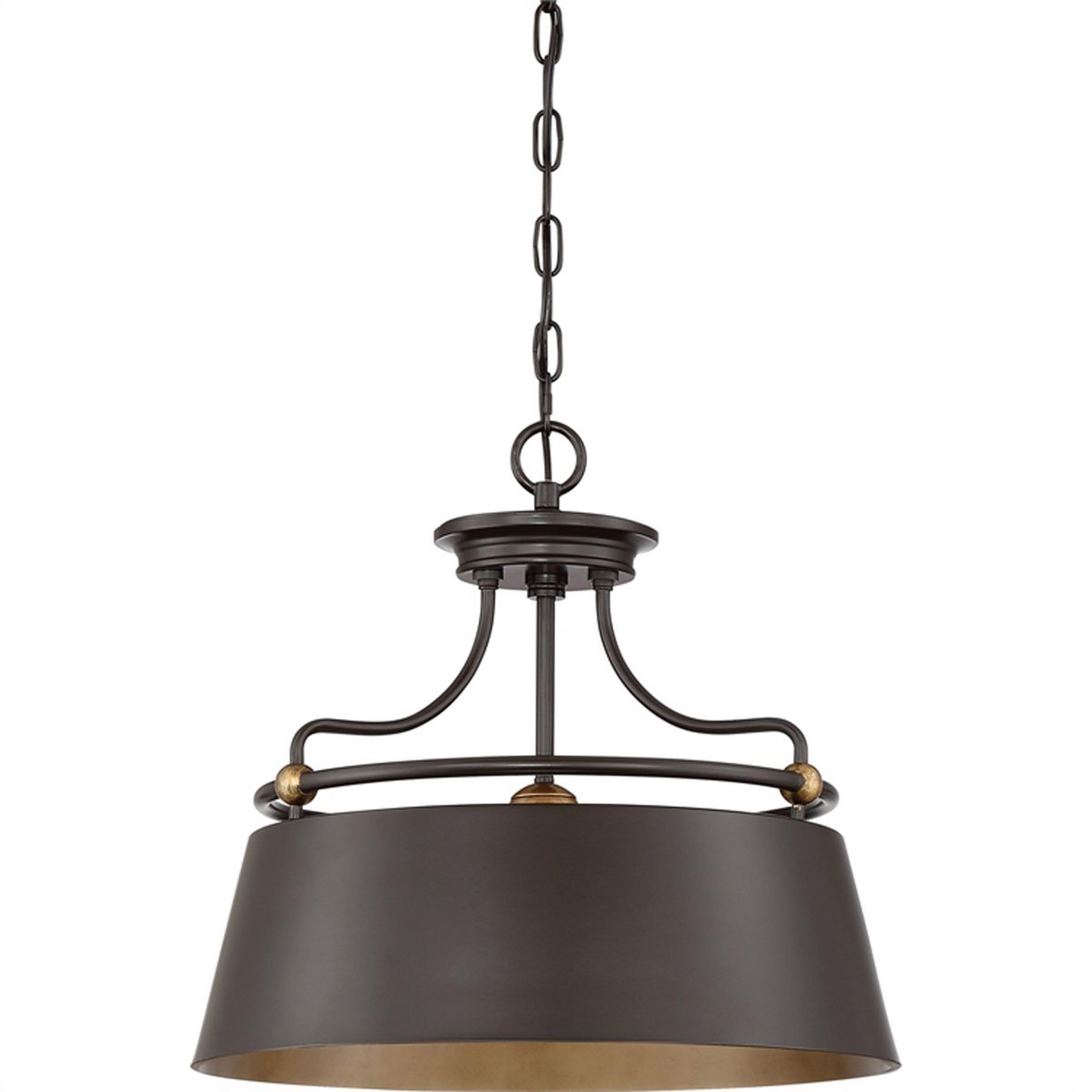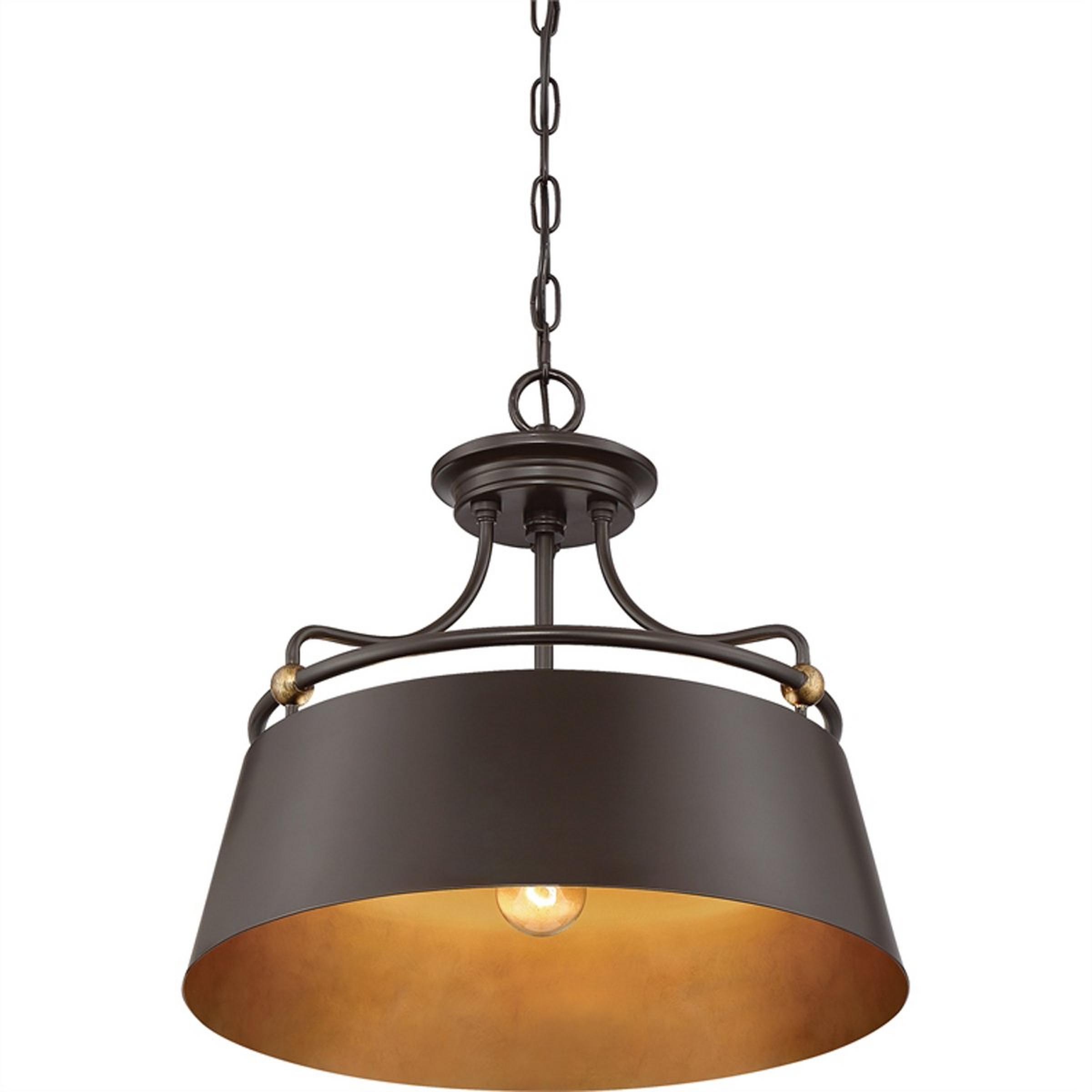 Drawing from vintage aesthetics with an industrial flair, the Mayfair Chandelier's compact drum shape is the best fit for your foyer or dining room. Its rich metal exterior is accented by bright circular details, giving this simple design visual complexity. Its contrasting interior matches its accenting finish to illuminate your space with a warm glow. This mixed-metal design complements various decor styles, elevating your home with a luxurious atmosphere.