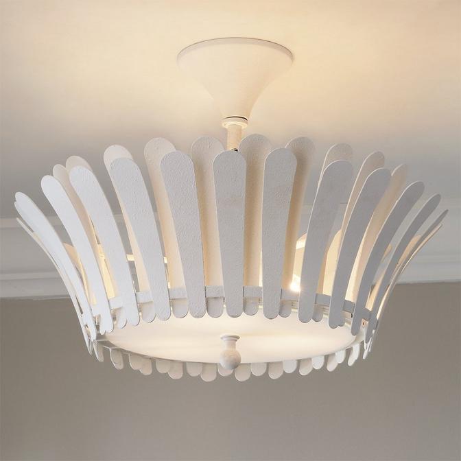 Playful and decorative, this ceiling light boasts a dynamic silhouette and functional, soft lighting. The central frame consists of upturned plumage paired with a uniquely flared canopy. The diffuser at the bottom casts broad lighting, gently illuminating and beautifying any space.