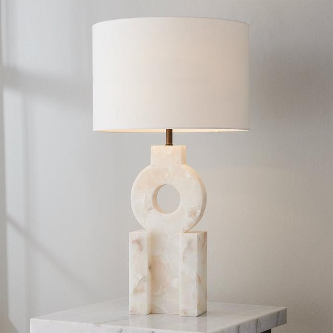 Grace any surface with the Melinda Mod for a contemporary influence on your interiors. Sculptural and unique in shape, this alabaster table lamp would thrive as a pair on a console table in a foyer. Alabaster is a natural material, and variations are to be expected and celebrated.