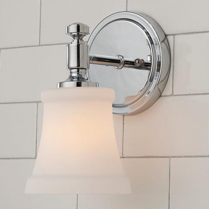 Showcasing classic style with refined details, this bath sconce will brighten your bathroom with a soft glow from the white glass shade.