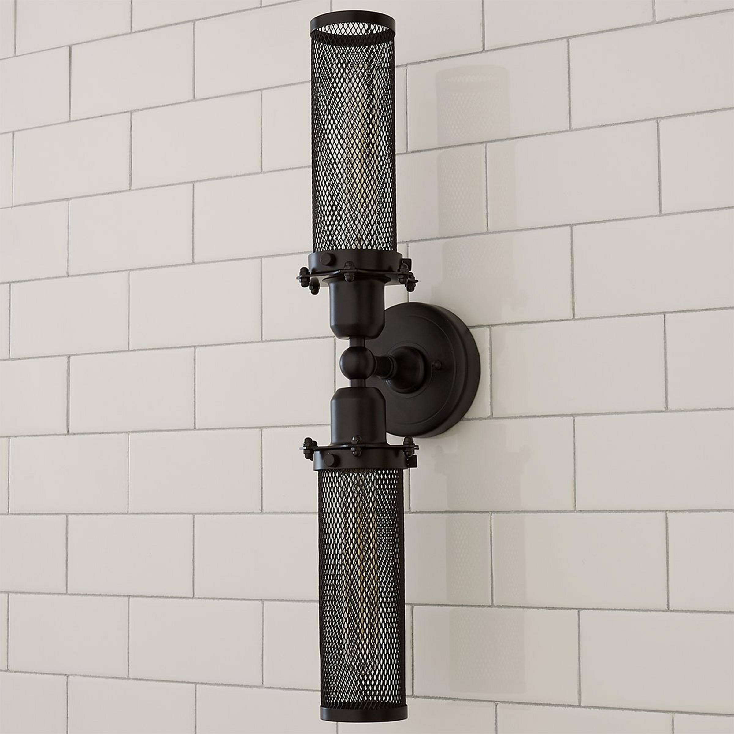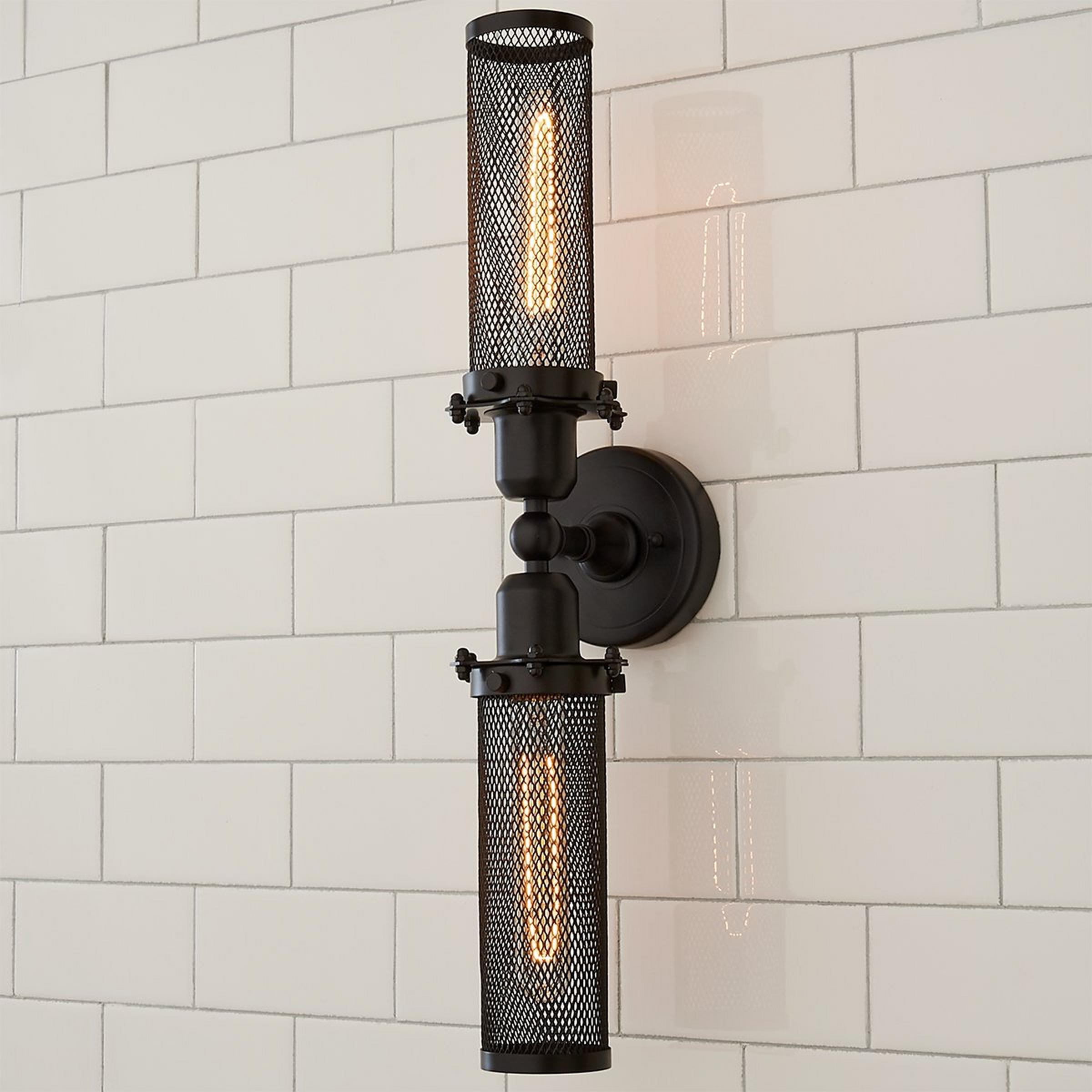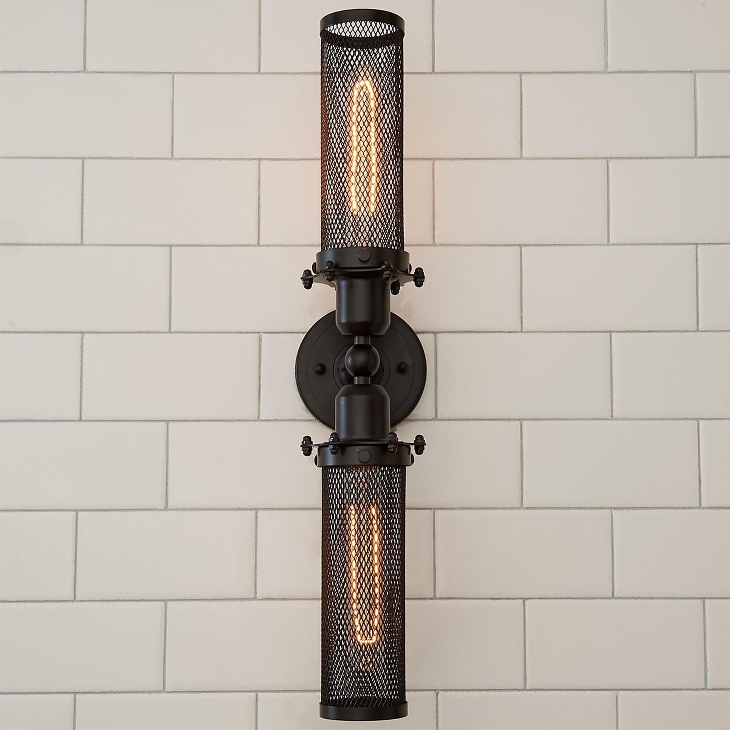 Restoration style in three popular finishes paired with sleek mesh cylinder cages. Light bulbs sold separately. Expertly crafted with attention to detail, this industrial sconce features retro style Place one horizontally above a mirror or pair a couple vertically on either side of a mirror. Update a dark hallway or wall with these vintage-style fixtures.