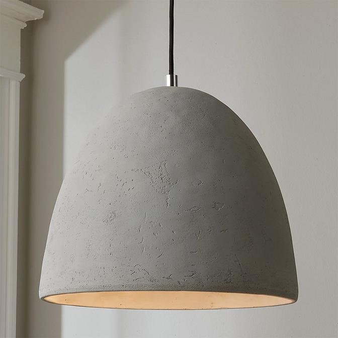 By adding this luxuriously chic textured pendant into your space, it's a guarantee for your guests to stop and stare! Minimalism never looked so good with a streamlined concrete dome shade, a black fabric cord and a chrome canopy to finish the look. This striking pendant comes equipped with its own energy-efficient LED bulb that will provide the perfect amount of lighting to your kitchen or dining room. Due to the nature of concrete, no two will be exactly alike in color, shape, or texture, adding to the unique charm of this wonderful piece.