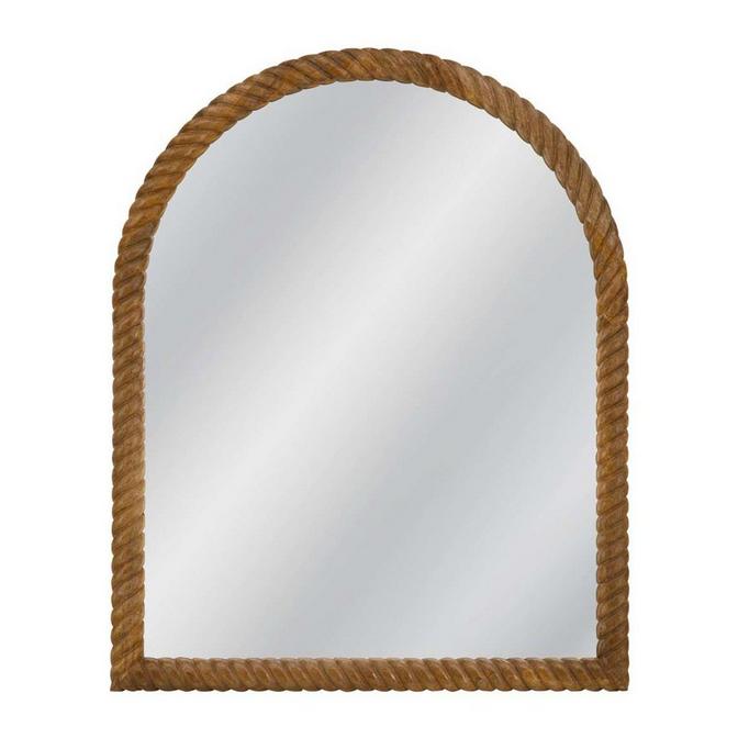 The Mobray Mirror spares nothing in the way of ornamentation and visual intrigue. The arched shape is reminiscent of gothic cathedrals and gilded rococo halls; it is ostentatious, yet softened by the humility of the warmth of the wooden frame. The carved rope molding adds further dimension to the style as it swirls in a spiral around the edges of the mirror. Hang this in a front entryway or living space to elevate the room's aesthetic, and integrate it with existing furniture and décor that share its attention to detail.