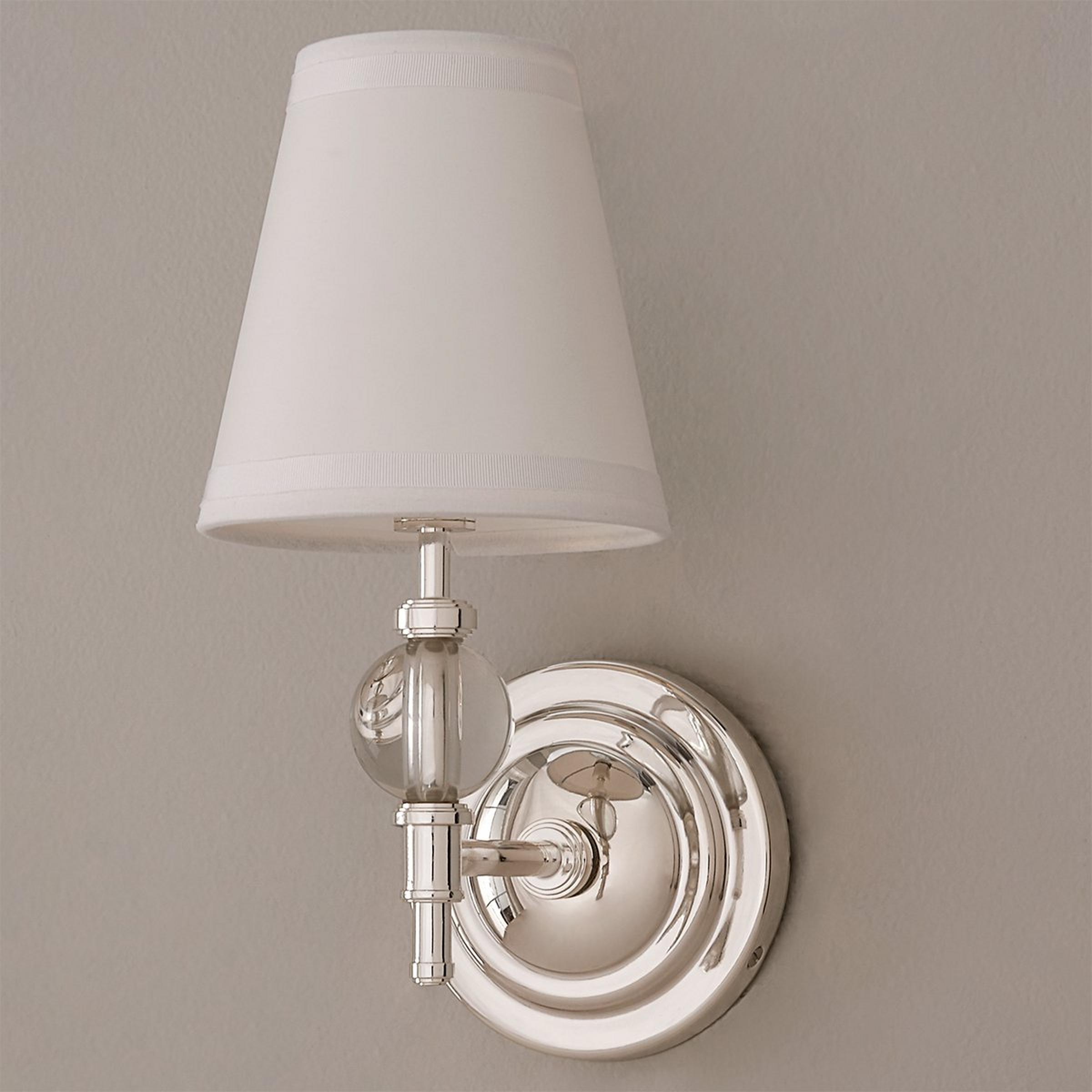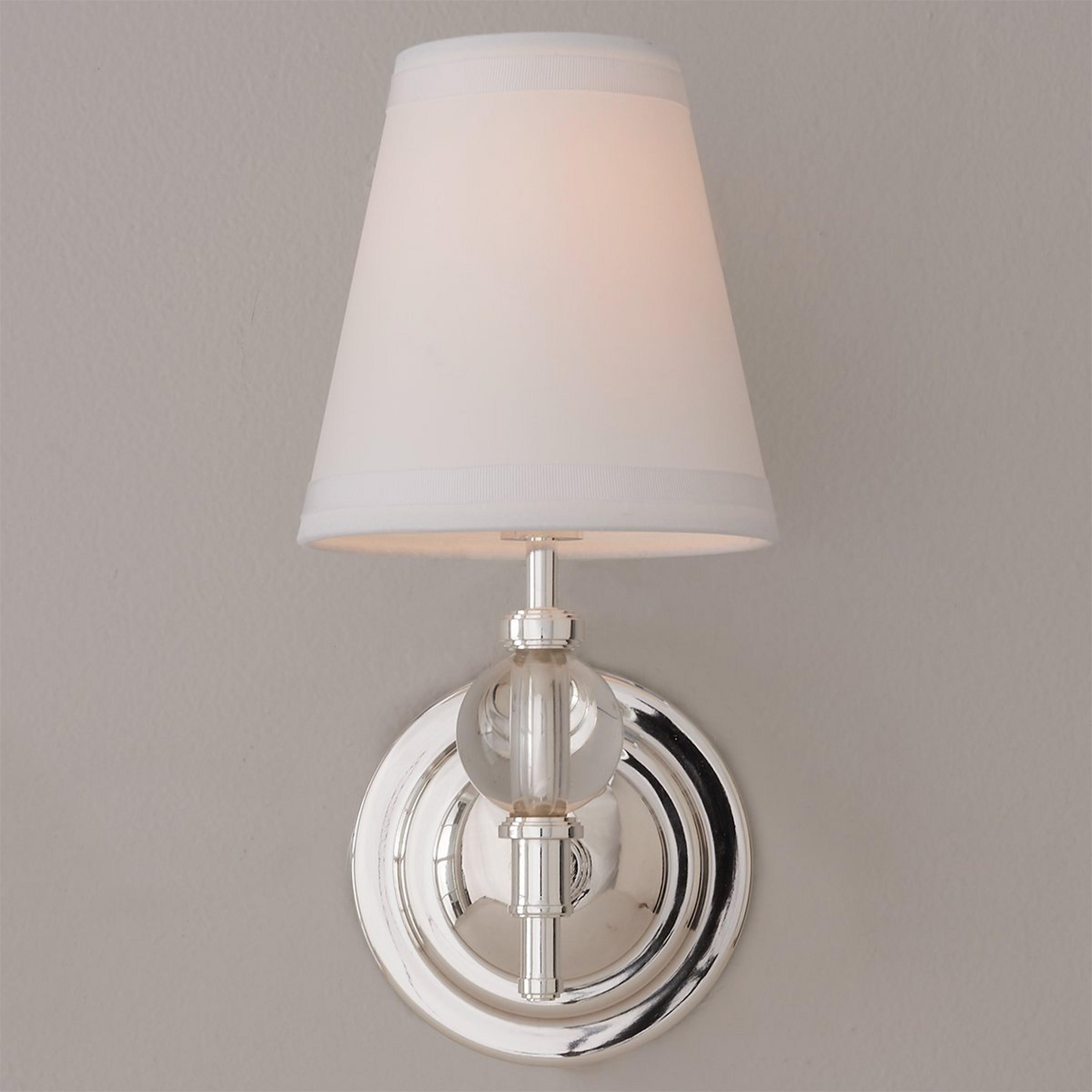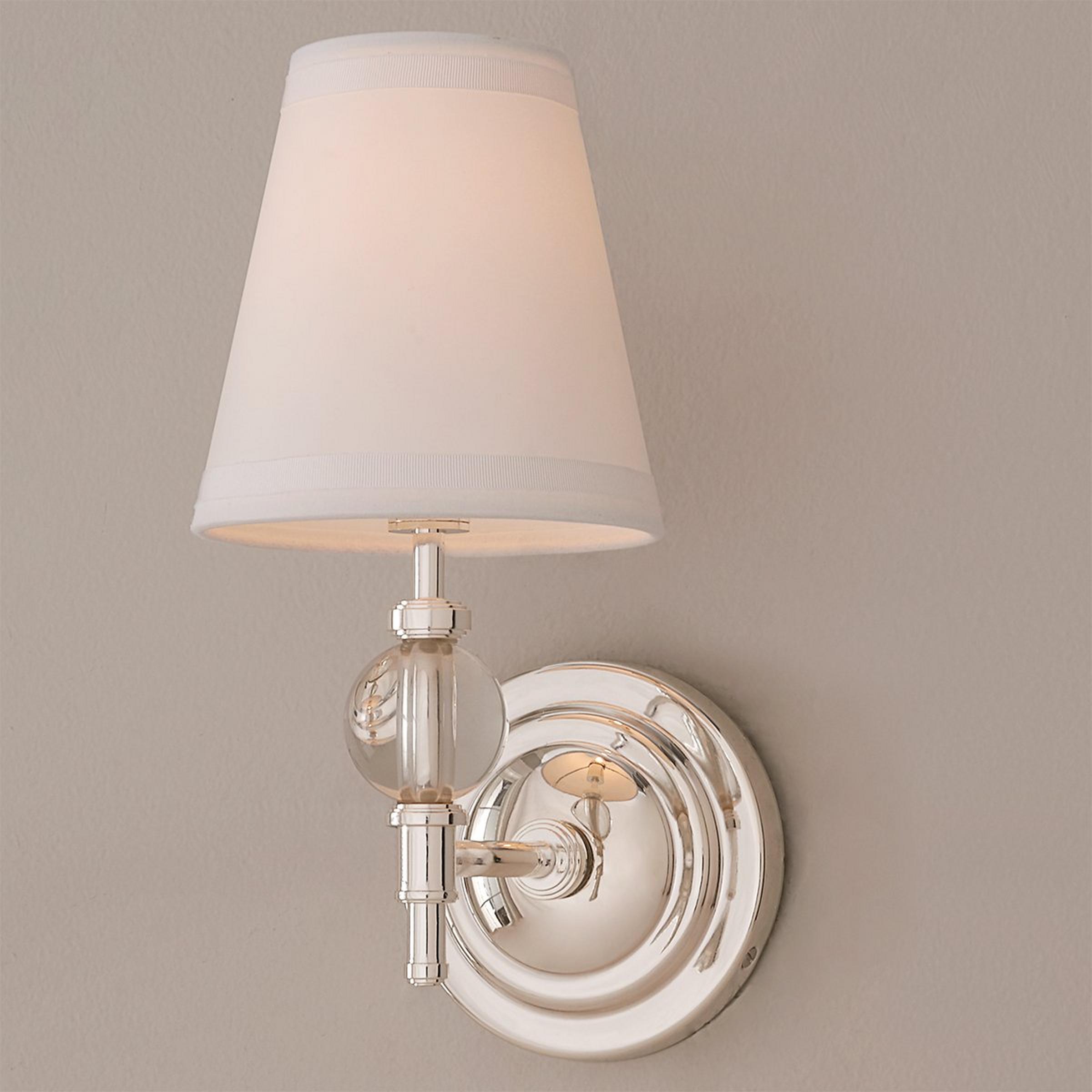 A simple shaded silhouette with a modern feel is given a splash of glamor with the addition of a heavy crystal ball accent in this charming wall sconce.