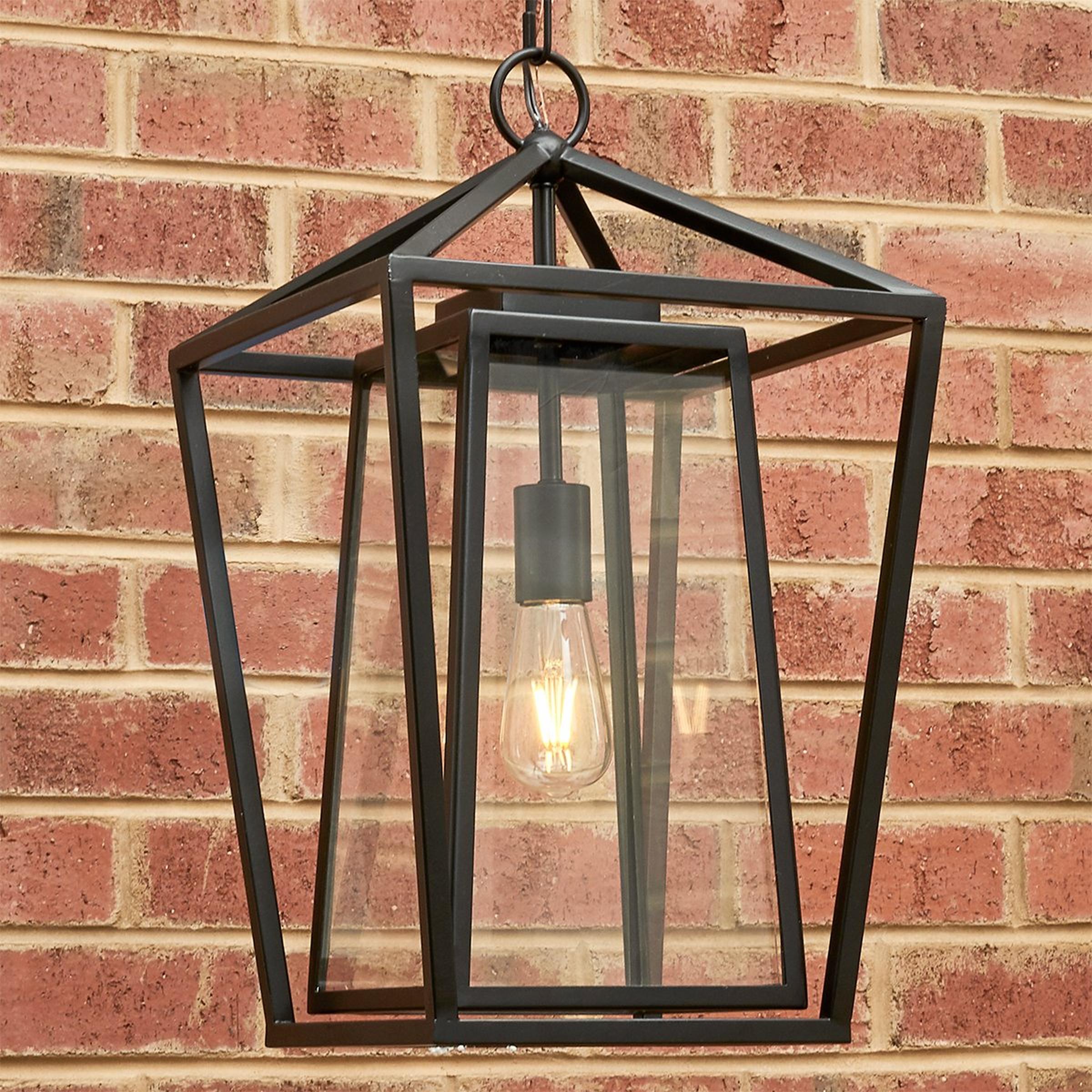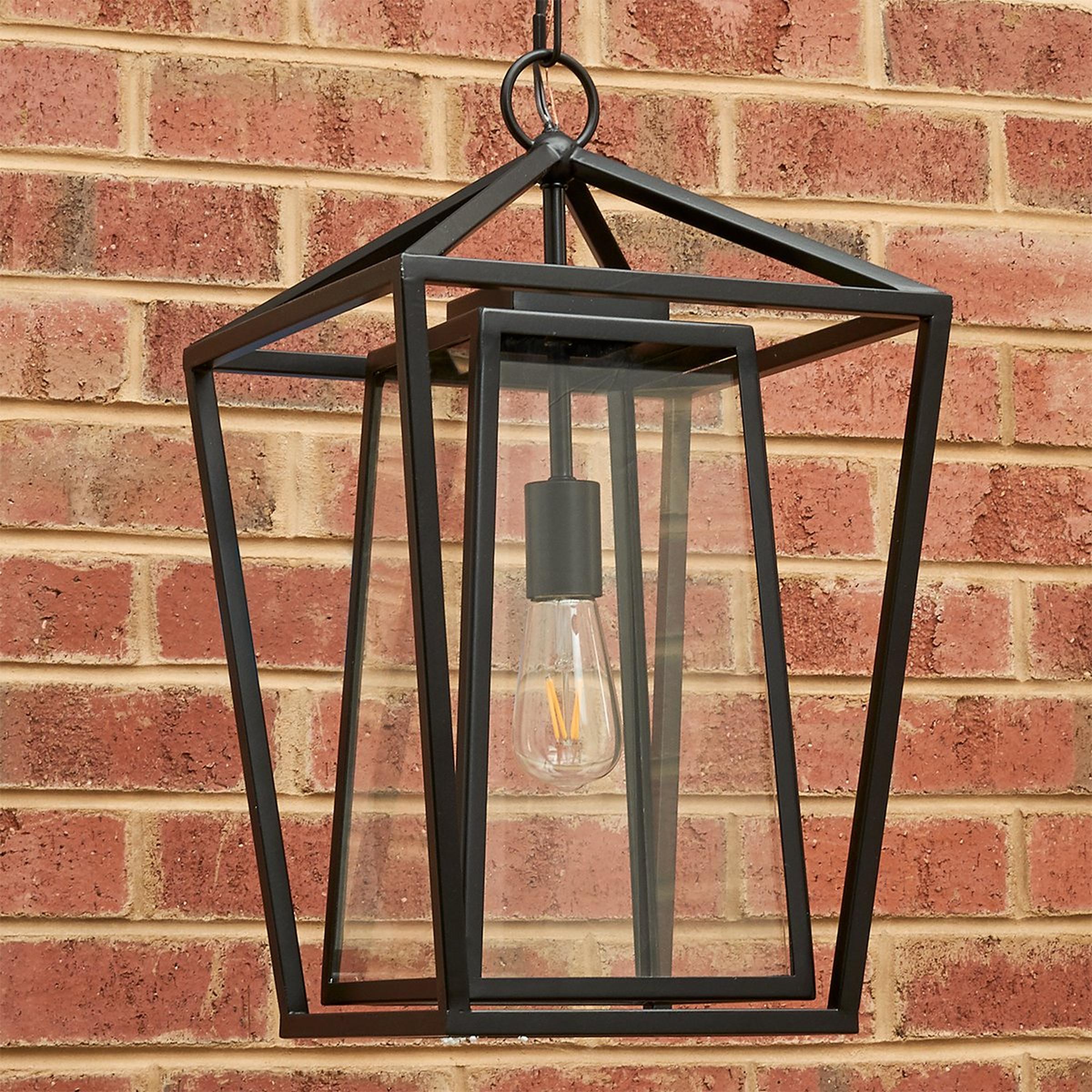 This frame inside a frame design is the perfect update to this classically inspired outdoor lantern. Durable stainless steel construction is finished in Black and supports an inner frame of Clear panels of glass for a crisp and clean appearance.