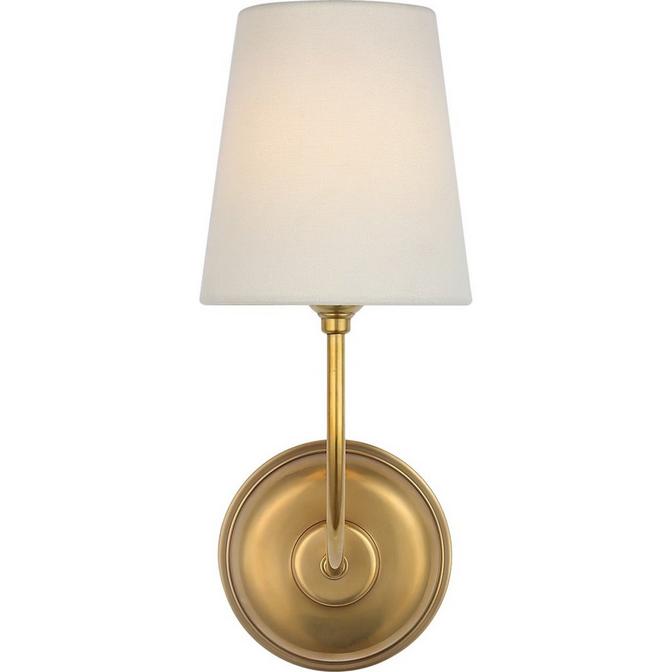 Symmetry meets sophistication in the Montclair Rechargeable LED Cordless Sconce, a graceful fixture designed to illuminate with balance and charm. A gently arched brass arm extend from a central circular backplate, each supporting a tailored white linen shade that diffuses light with soft elegance. The warm metallic finish and clean lines evoke timeless refinement, while the simplistic design offers enhanced ambient glow. Ideal for flanking a fireplace, anchoring a hallway, or adding harmony to a bedroom retreat, the Montclair Wall Sconce blends classic form with fashionable poise. Remote compatible rechargeable LED light source and charging cord included. Remote control sold separately. Multi-unit universal charging stations are available but sold separately.