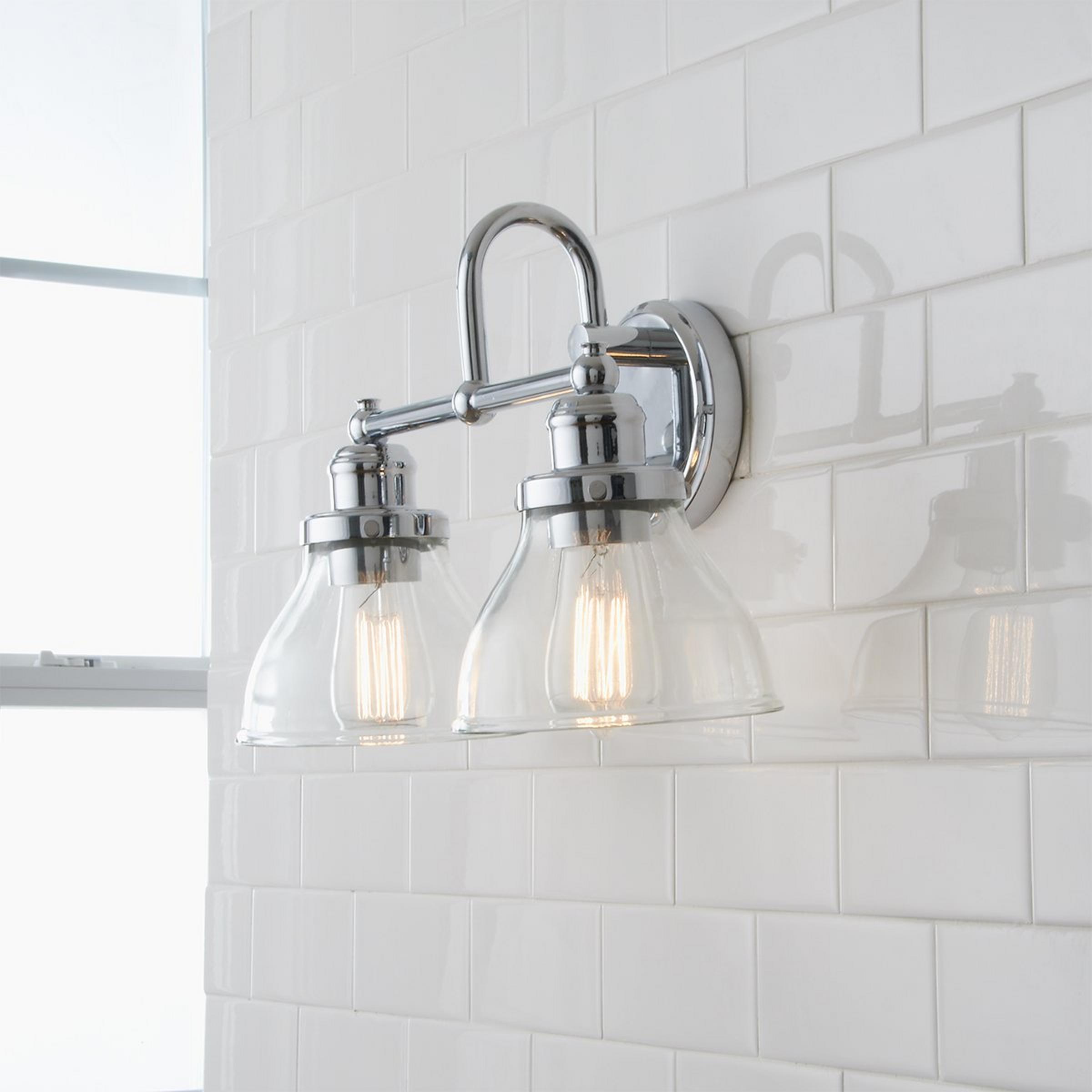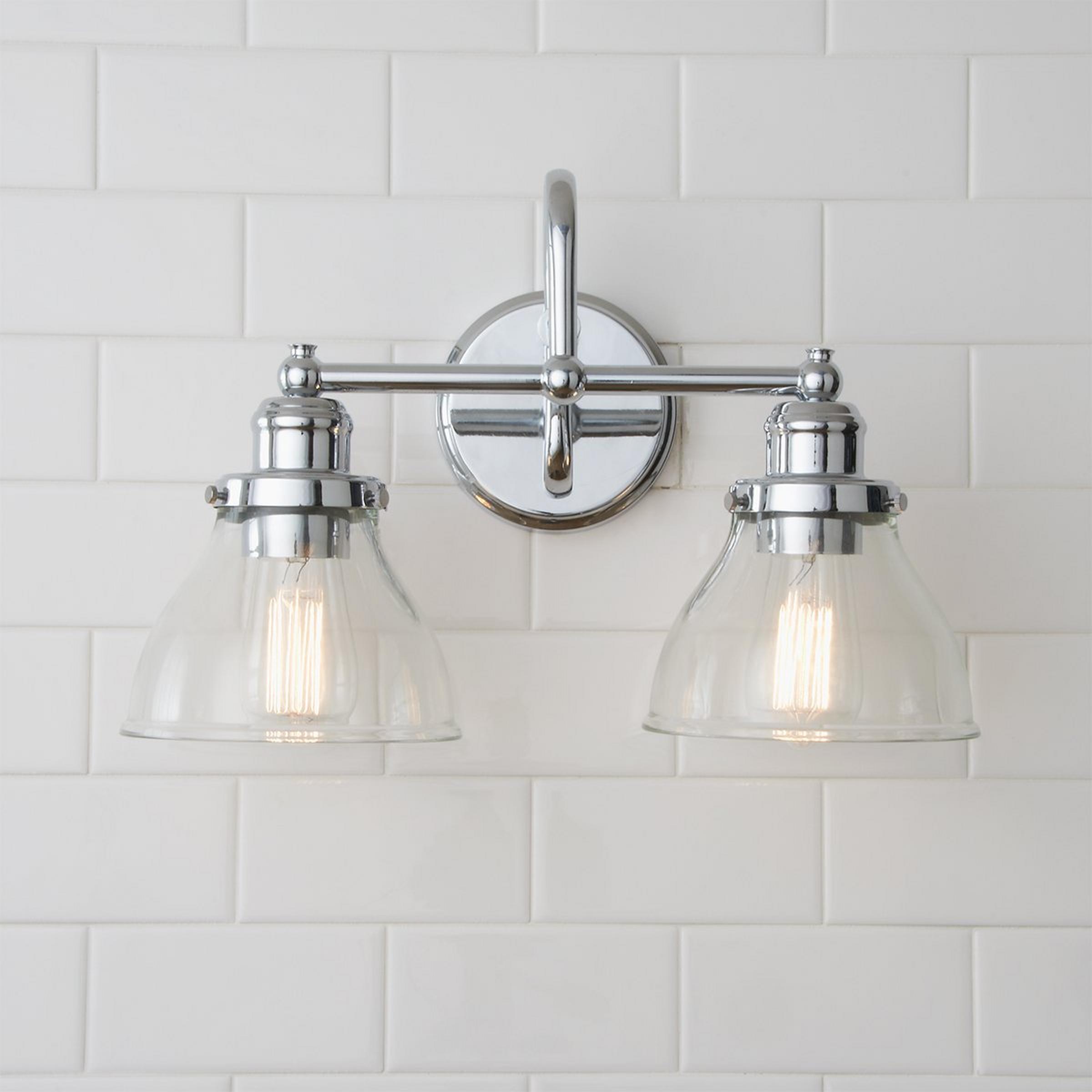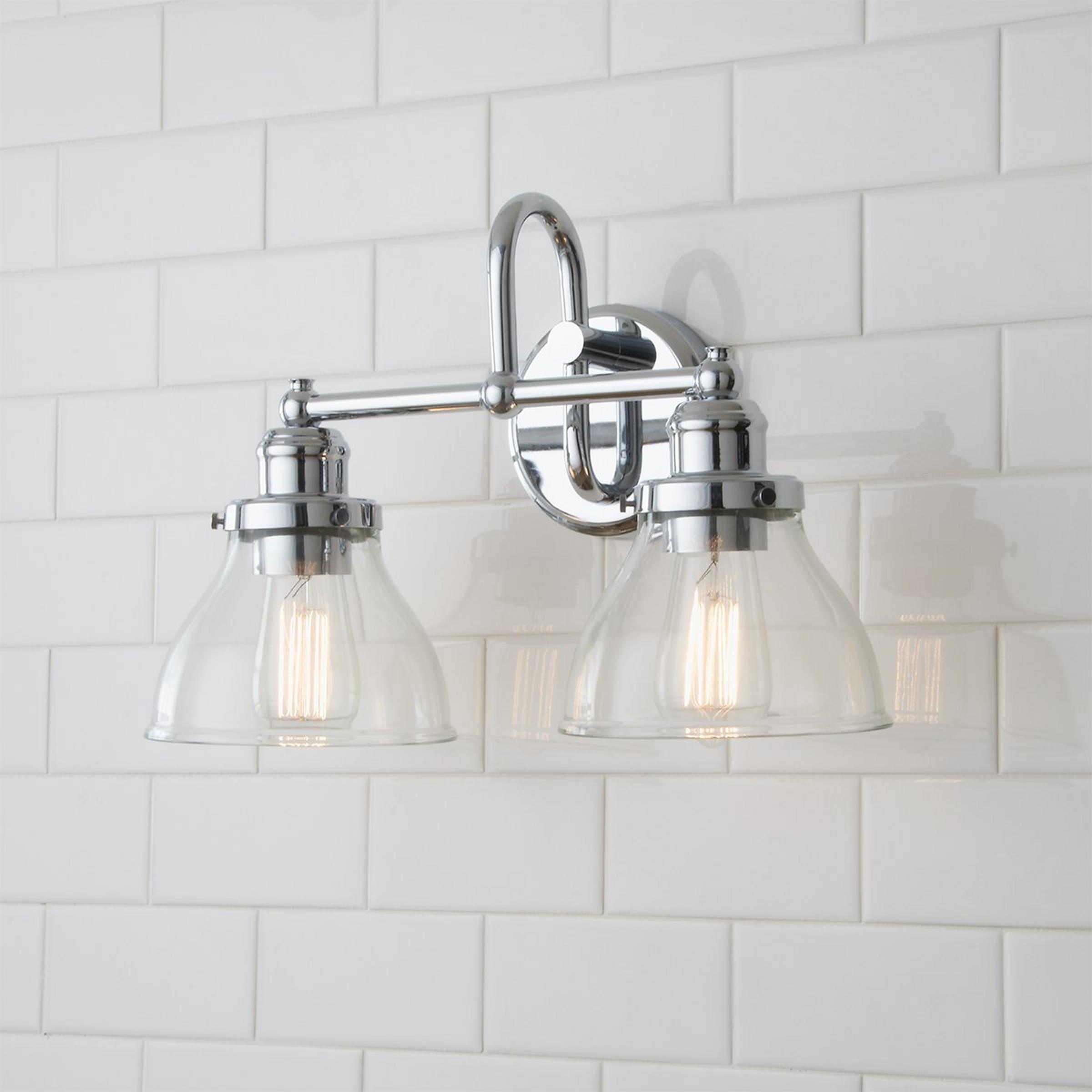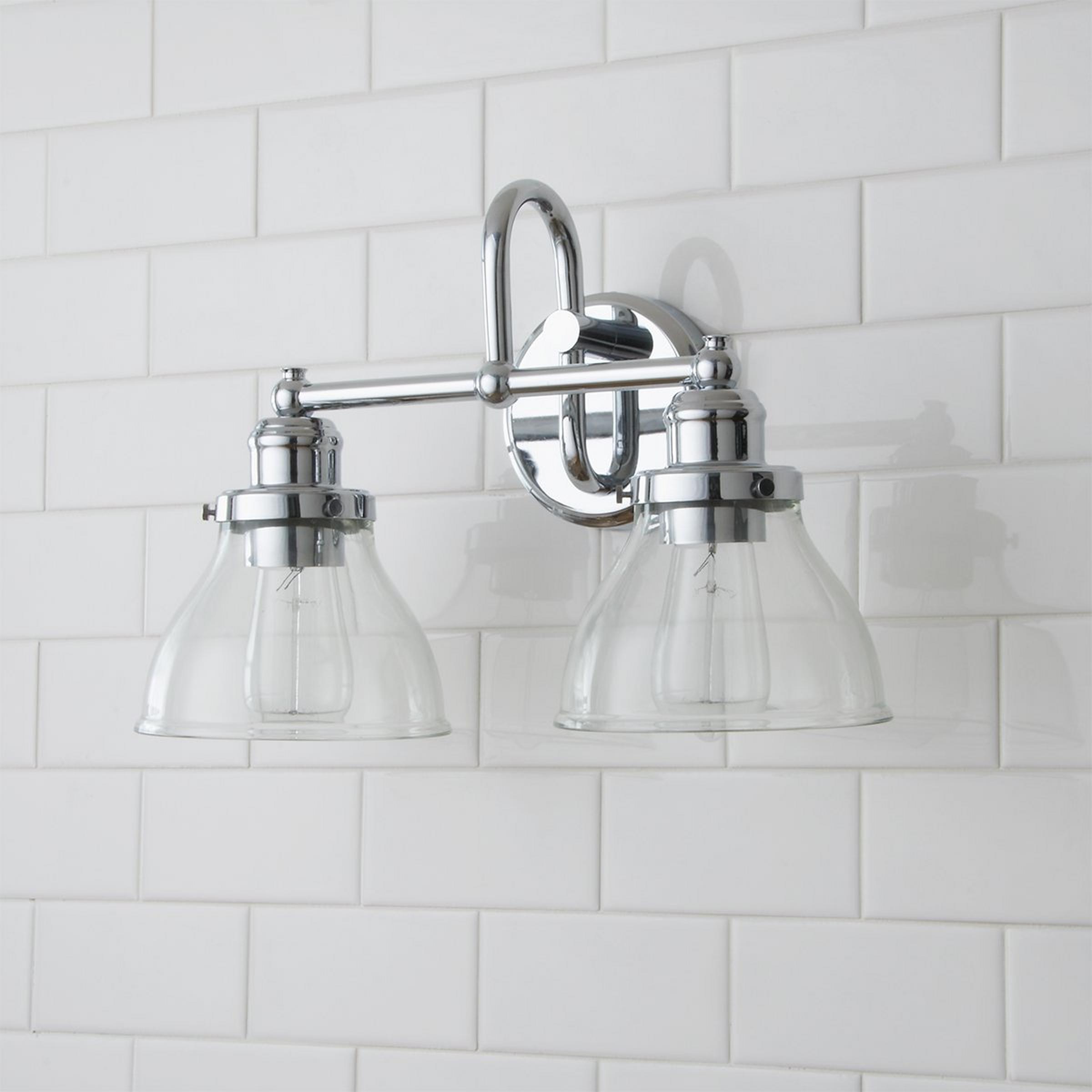This simple, classic and timeless design incorporates clear glass shades paired with a trendy finish. Placed over the mirror in your bathroom or powder room, this fixture will complete your style.