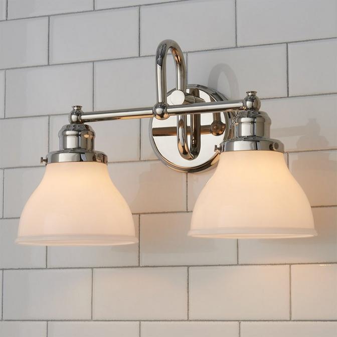 This simple, classic and timeless design incorporates milk glass shades with trendy finishes. Placed over the mirror in your bathroom or powder room, this fixture will complete your style.