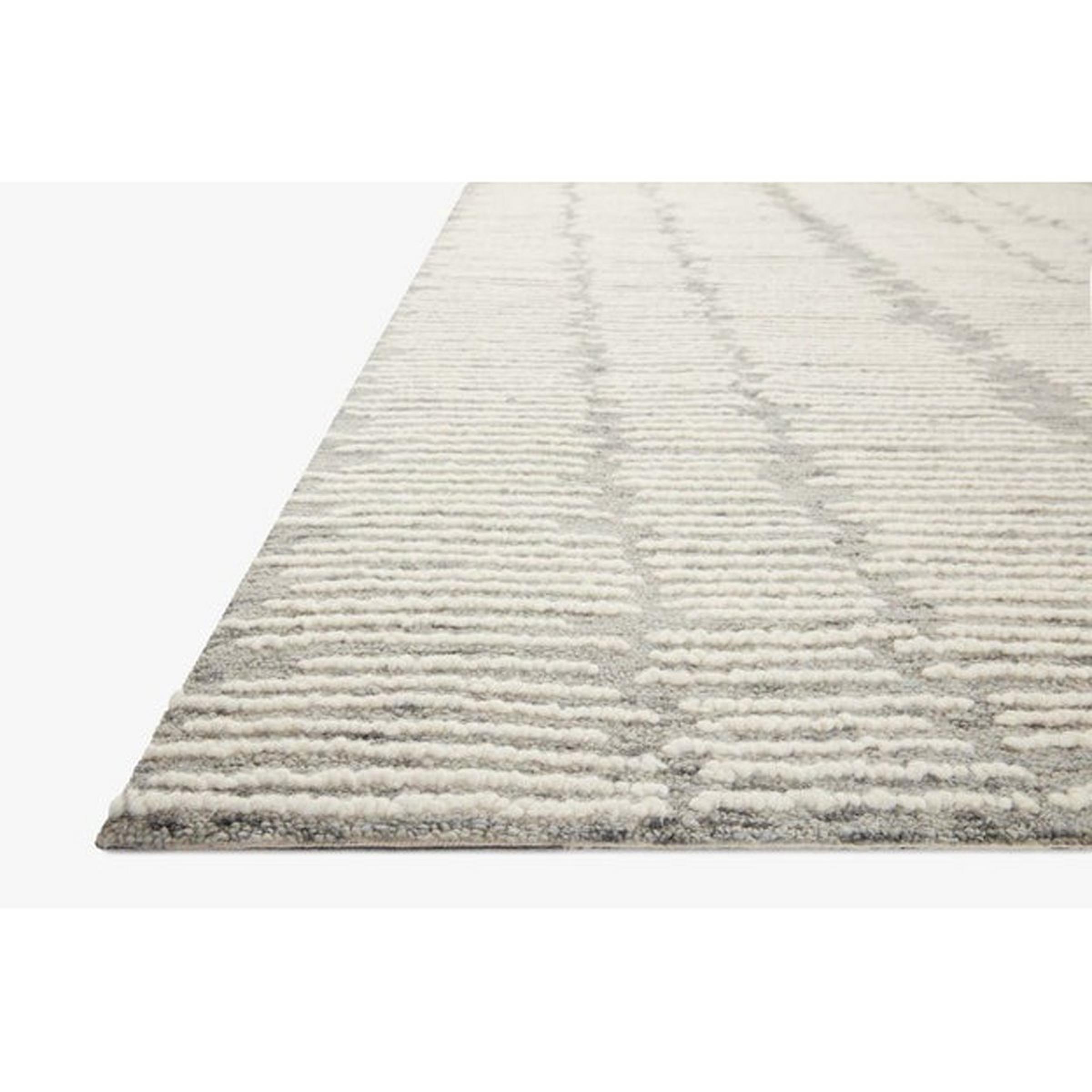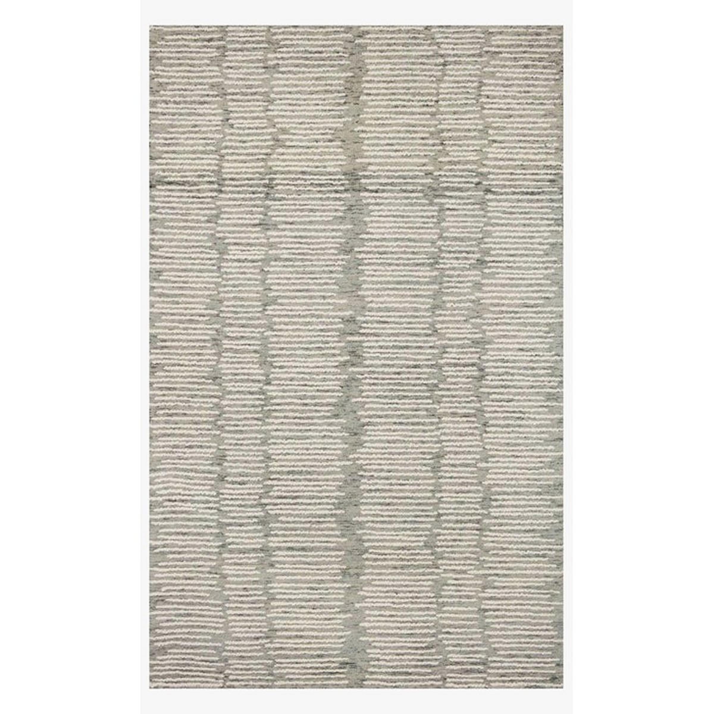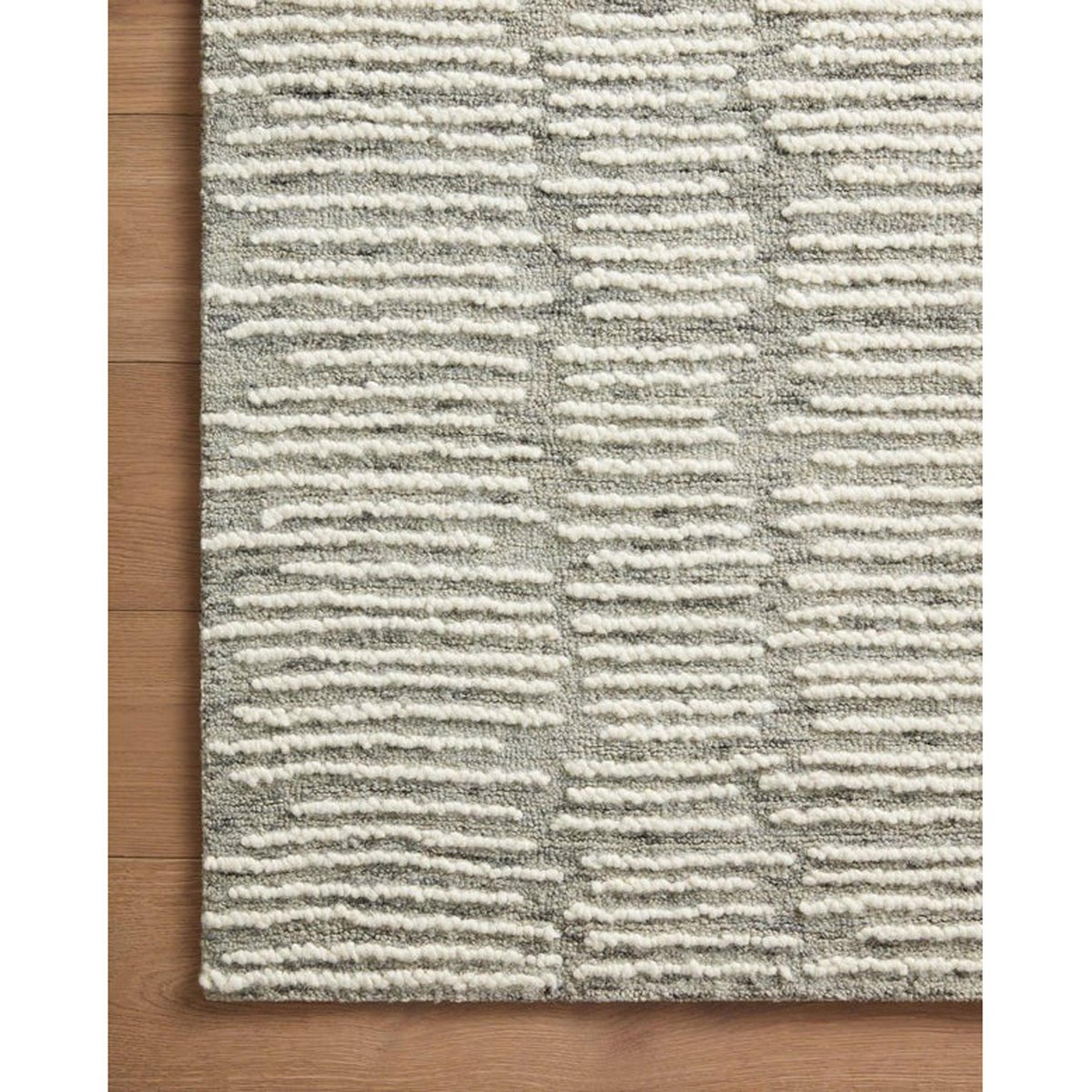 The pattern of this rug is whimsical and dimensional as thin striped hatches run the length of the floor in a high-low pile. The stripes are organic and gestural, providing a sense of liveliness wherever placed. This product is GoodWeave-certified, demonstrating a commitment to ethical labor practices.