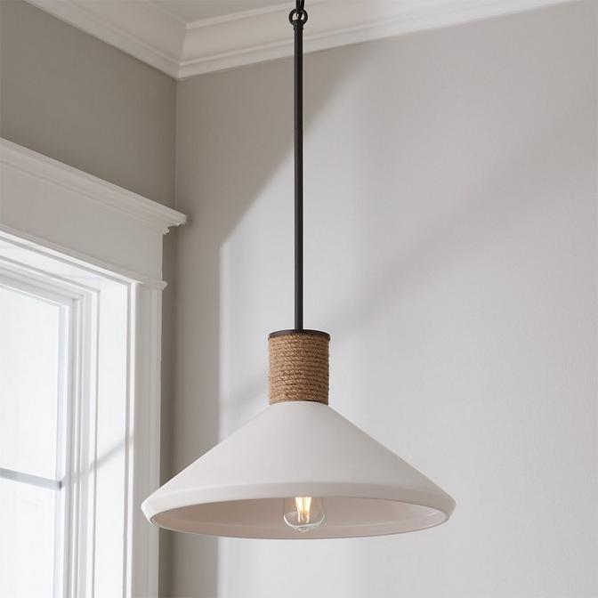 Versatile from nautical to urban, our Myriad Pendant is offered in a multitude of shapes for a variety of motifs. Each fixture is crafted from a ceramic body, metal hardware, and a jute rope cap detail. While all lights in this collection carry a similar story, each piece still presents a uniqueness.