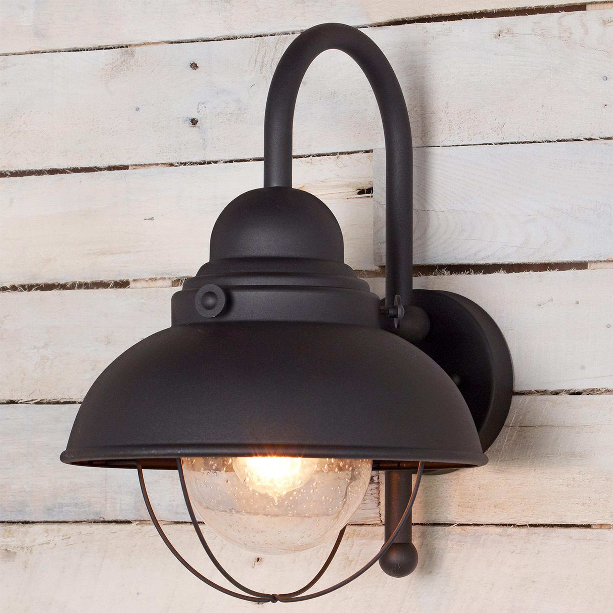 The cheery beam of this sturdy aluminum outdoor wall light shines a hearty welcome to weary travelers and makes your home a cozy port in any storm. Add a warm, welcoming glow to your home with our exterior lighting. Not suitable for coastal environments.