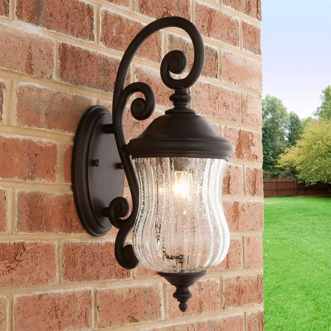 This outdoor collection resists fading, corrosion, chipping and flaking, making it ideal for coastal saltwater environments. The non-metallic, injection-molded material contains ground marble plus emery in a tough latex base so it will resist harmful UV rays and will not rust. Hand blown, clear optic seeded glass and dramatic sweeping arms in a Black coral finish add traditional style-driven details. The durability of the materials will provide many years of lasting beauty.