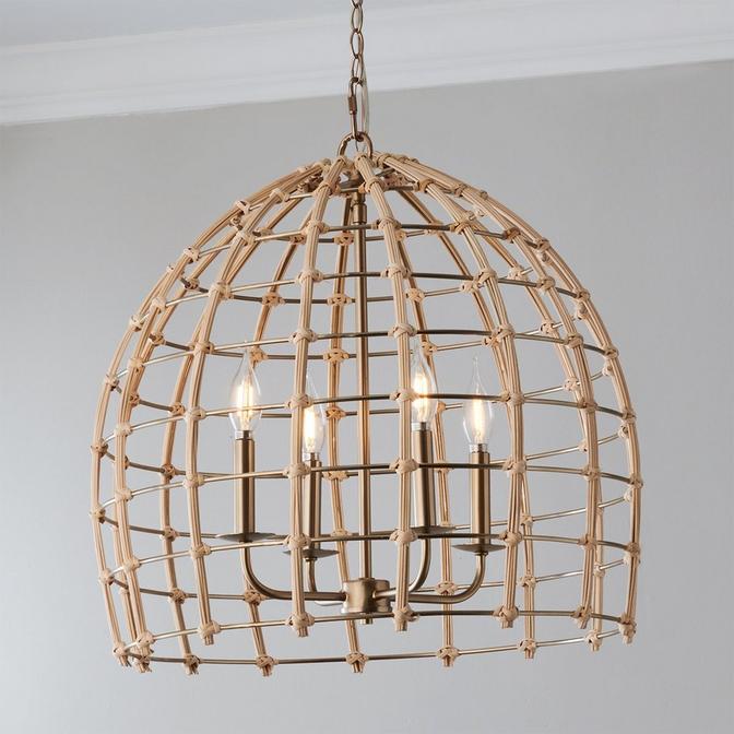 A conspicuous hand-bent rattan frame exhibits natural bliss, piquing organic interest in your home with this handcrafted lantern. Use multiples as statement pendants over an island.