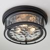 Inspired by a coastal charm aesthetic, this ceiling light features impeccable metalwork and a stunning water glass shade mimicking the motion similar to that of a wave in the ocean, creating a sense of movement when illuminated.