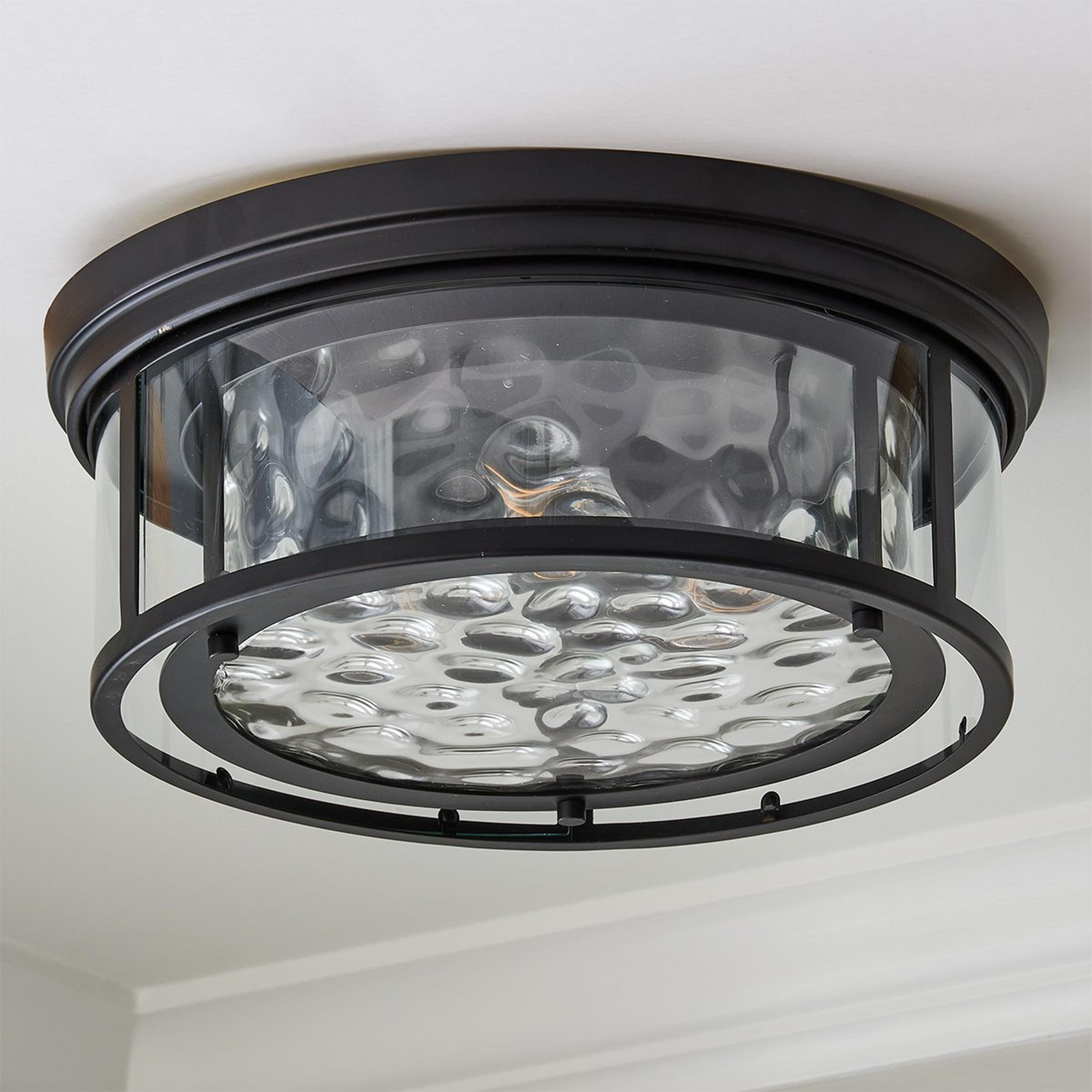 Inspired by a coastal charm aesthetic, this ceiling light features impeccable metalwork and a stunning water glass shade mimicking the motion similar to that of a wave in the ocean, creating a sense of movement when illuminated.