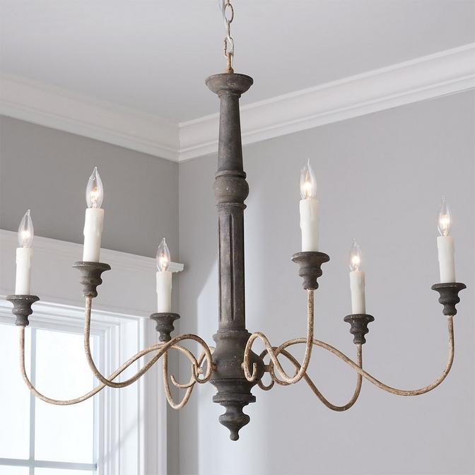 The Nemours Chandelier overflows with old world charm, leaving your foyer with a bountiful amount of personality. Featuring a center spindle with carved designs, the candelabras branch out in a curved form with the exposed bulbs. For a light that will boost both style and character, exhibit this chandelier front and center.