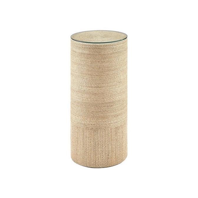 Showcasing time and skill from trained artisans, this rope-wrapped accent table brings a distinct textural feel to your space. The subtle fluctuations in neutral tones beautifully pair with soft coastal colors, infusing any space with a natural charm that showcases its artisanal craftsmanship. Horizontal and vertical weaving produce dynamic visual interest, allowing you the flexibility to put the glass top on either side. Whether holding a lamp for display or holding a beverge while you sit and chat, this piece brings a tactile intrigue to your space.