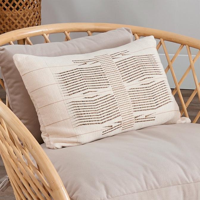 This lovely, neutral pillow is handmade by indigenous artisans in the Nagaland state of India and features the traditional weaving techniques and tribal patterns of the region. With all the convenience of a hidden zipper and a lush down insert, this piece offers both authentic handmade beauty and modern convenience.