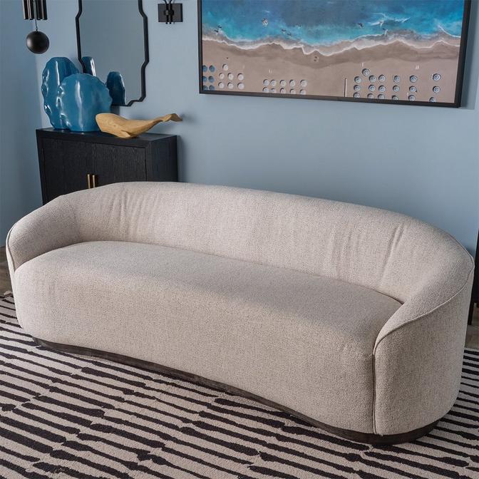 Sophisticated, modern and minimal in appearance, the Newton Sofa is an effortlessly chic take on classic post-modern design. Upholstered in a textural oatmeal fabric and set upon a dark wood base, this sofa features a gently curving shape and a simple silhouette that exudes effortless elegance.