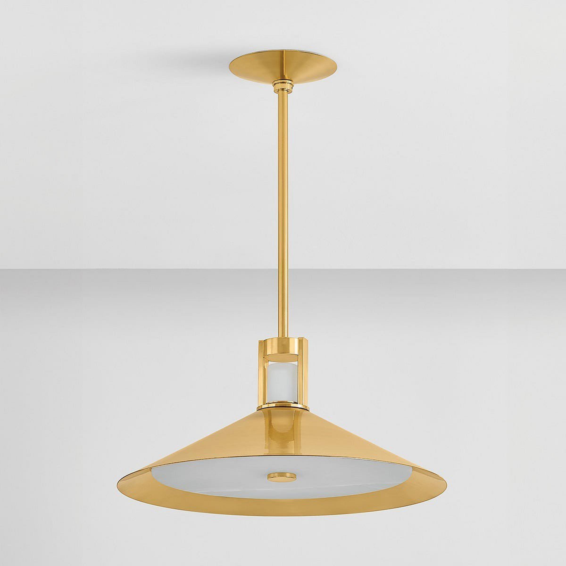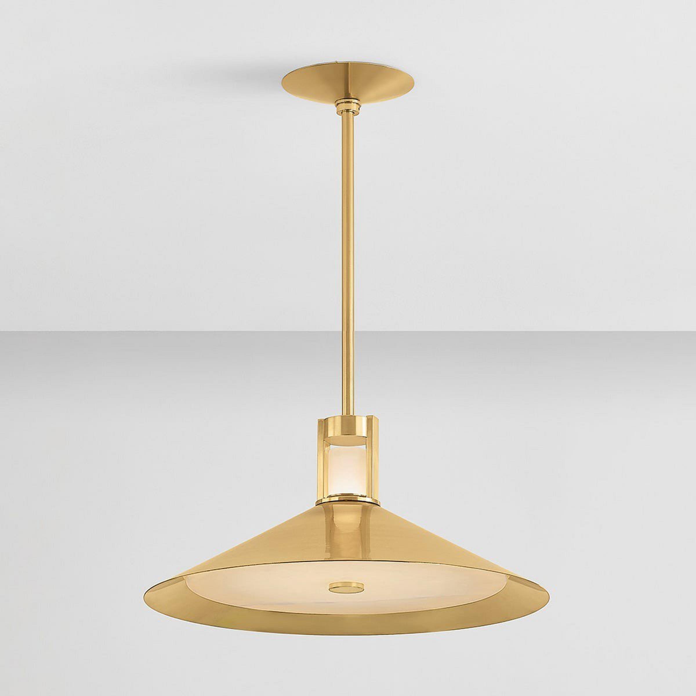 This pendant features layered materials to form a highly functional piece. Hang over a round dining table or kitchen island to take full advantage of the pleasantly even ambient light that shines through an alabaster diffuser. Due to the nature of alabaster, there will be variations in the veining of the stone, making each piece one-of-a-kind.