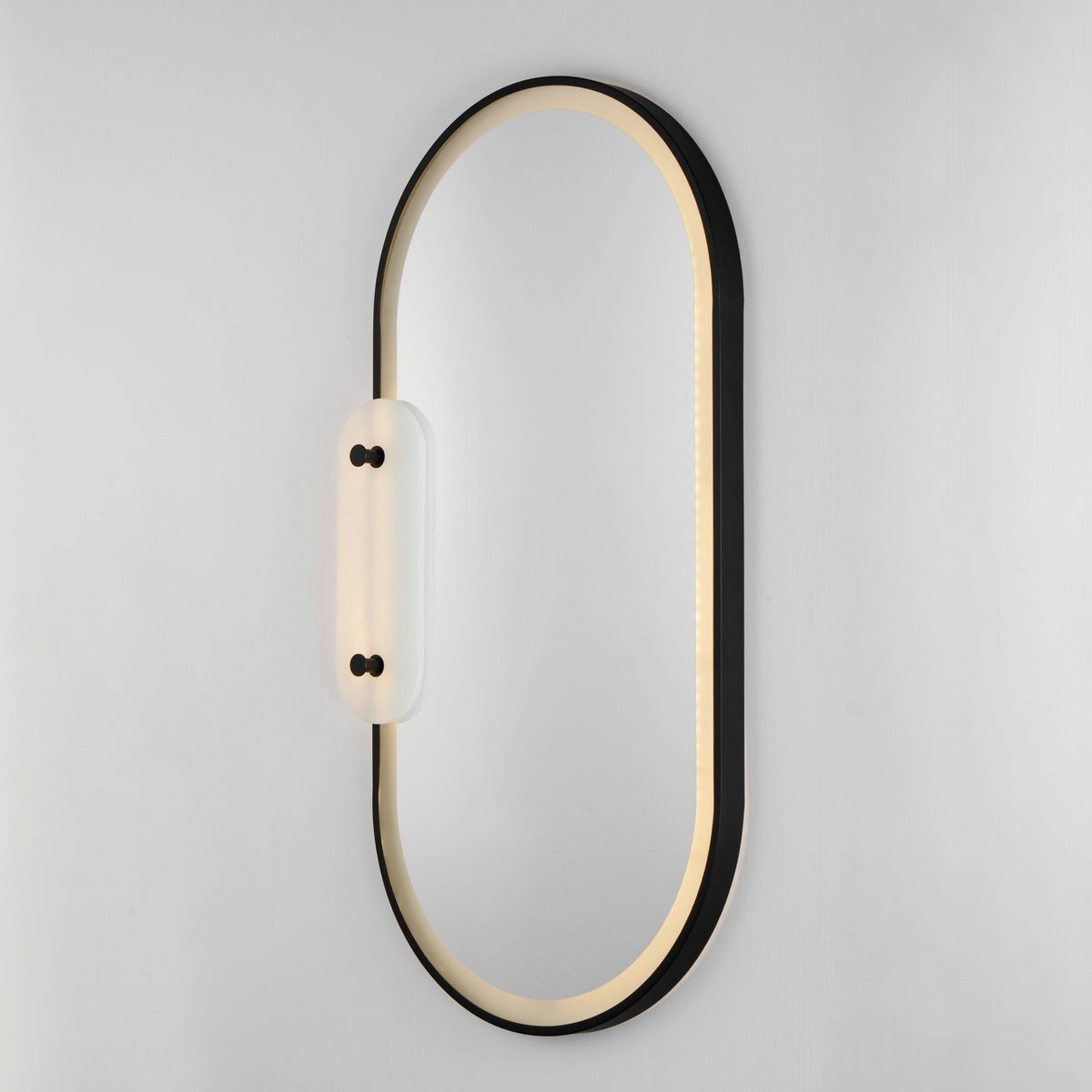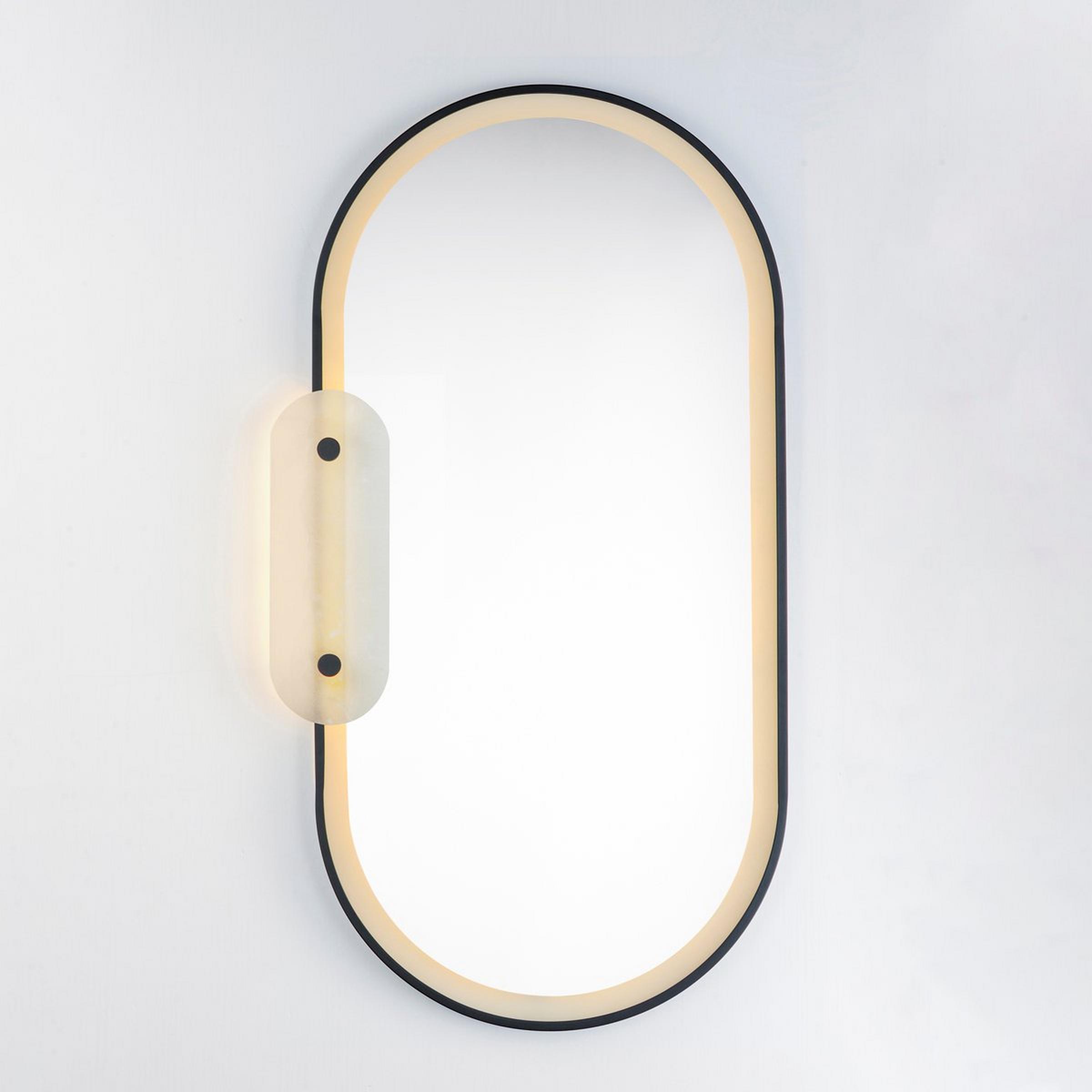 The Odette LED Mirror uses natural stone and integrated LED technology to balance modern features with organic materials. This versatile fixture is sleek, innovative, and undeniably luxurious, with a beautiful alabaster accent panel and LED lighting arrays lining the frame. Can be mounted with the lamp on the left or the right. Please note that alabaster is a natural material, and as such, variation in color, pattern, and veining should be expected and celebrated. No two mirrors are exactly alike, adding to the unique allure of this piece.
