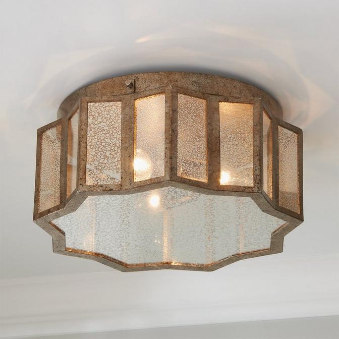 Expect nothing less than character defining allure from our Old-World Charm Ceiling Light. The mercury glass and aged Gold features are far from ordinary in this star-like, eclectic piece. Allow this fixture to grace your living room, bathroom or kitchen with the beauty your home deserves.
