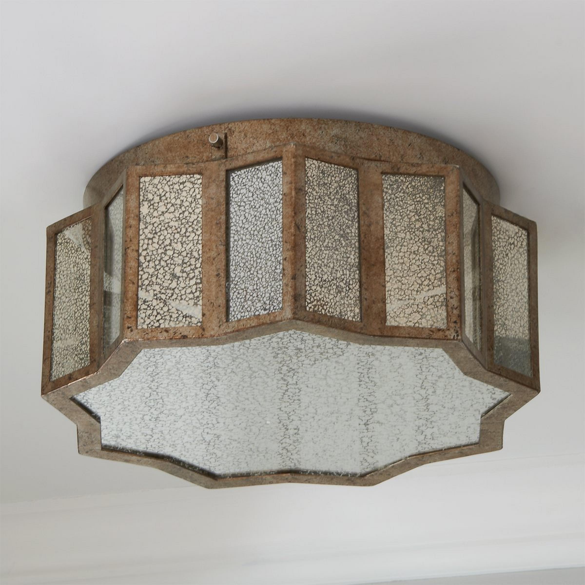 Expect nothing less than character defining allure from our Old-World Charm Ceiling Light. The mercury glass and aged Gold features are far from ordinary in this star-like, eclectic piece. Allow this fixture to grace your living room, bathroom or kitchen with the beauty your home deserves.